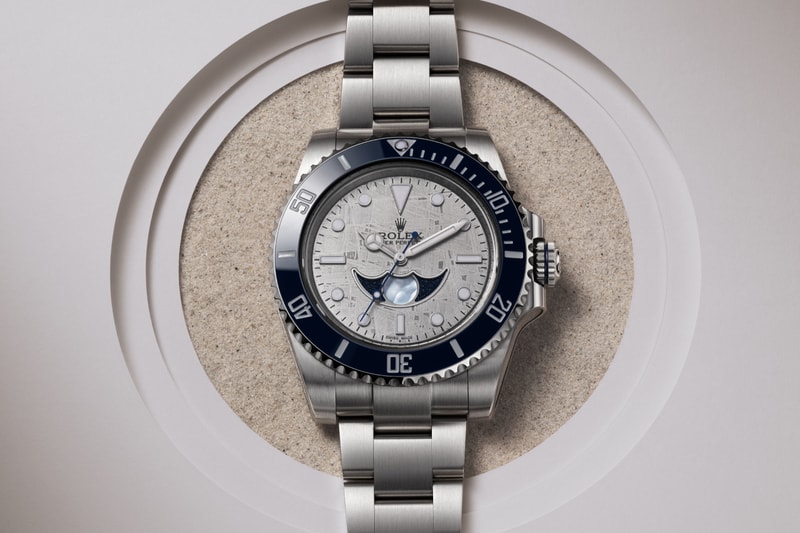 ダークナイトブルーのセラミック製ベゼルや時計ケースの一部にレーザーで粒状の模様を刻印するなど、細部にまでこだわりが見られます。オリジナルのロレックス製のムーブメント“キャリバー3135”はそのままに、ホワイトゴールド製のローター(回転子)と隕石のインサートが施されています。