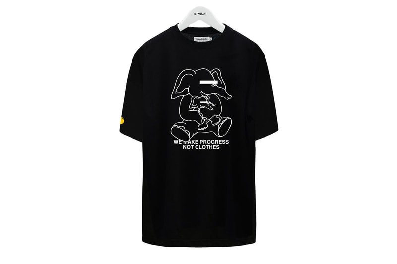 このコラボTシャツは、目元を隠した象の親子のグラフィックがフロントに配されたシンプルながらもインパクトのあるデザインが特徴だ。グラフィックの下には、“WE MAKE PROGRESS NOT CLOTHES”のメッセージがプリントされており、右袖には『SIWILAI』の頭文字であるSの刺繍が施されている。背面には“SIWILAI 10”の文字と〈UNDERCOVER〉ロゴがデザインされており、カラーバリエーションはブラックとホワイトの2色展開となっている。