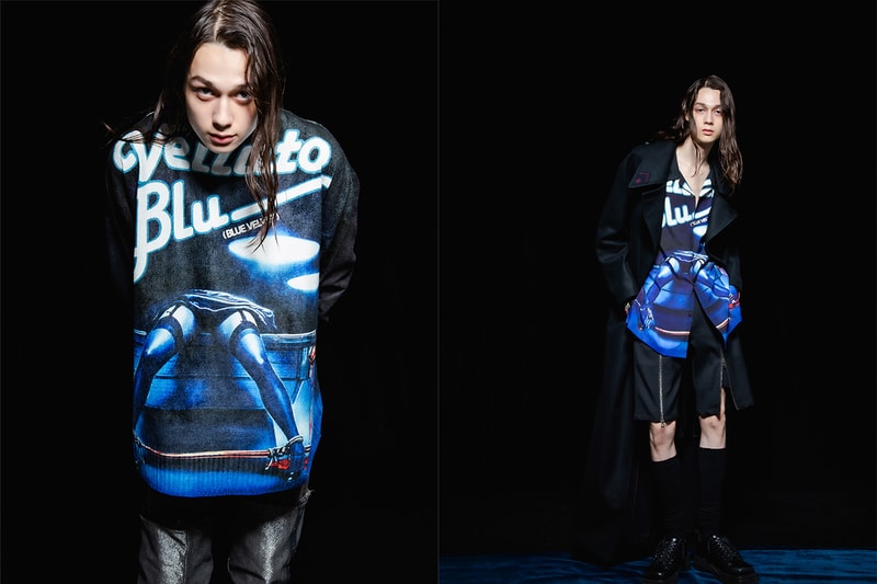 〈DAIRIKU〉からは、『ブルーベルベット』のテーマに沿ったベルベットの様な質感のニット(35,200円)や、特徴的なオーバーサイズの開襟シャツ(33,000円)が登場します。両アイテムは、前身頃に映画のポスターがプリントされており、まるでポスターを着用しているかのような雰囲気です。