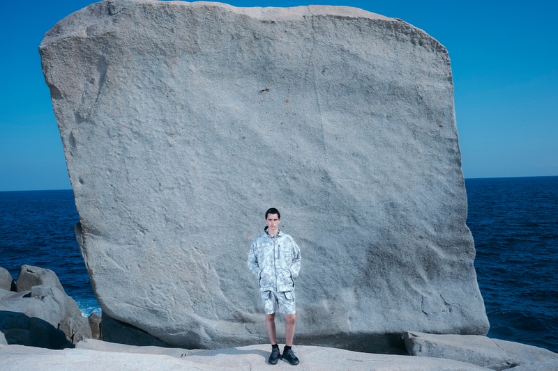 今回のコレクションには、ヨセミテ渓谷からインスピレーションを得た総柄のナイロンジャケット(36,300円)、ナイロンベスト(27,500円)、ワイドパンツ(26,400円)、サンシェード付きキャップ(13,200円)などがラインアップされています。全16型のアイテムが登場します。