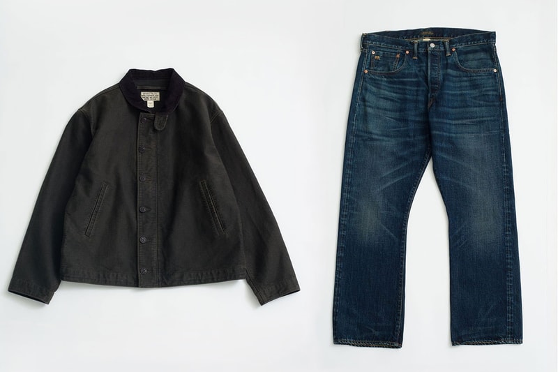 今回は、『Ron Herman』限定カラーで仕上げた〈DOUBLE RL〉のデッキジャケットとデニムパンツが登場する。デッキジャケットは、日本製のピグメントを用いて染められたブラックカラーに洗い加工を施し、ヴィンテージ感を演出。ボディには、通常のツイルより経糸と緯糸の本数を多く打ち込み、加えて耐久性に優れたグログラン織りである“ジャングルクロス”を使用することにより、光沢感あるブラックを再現している。また、襟とカフス裏にはコーディロイを用いて、アクセントをプラス。ほかにも、ボタンとフルジップ付きの前立てや、ベンチレーションとしてあしらわれたメタルのハトメ、ドローストリング付きの裾など、機能性も兼ね備えたアイテムに仕上がっている。