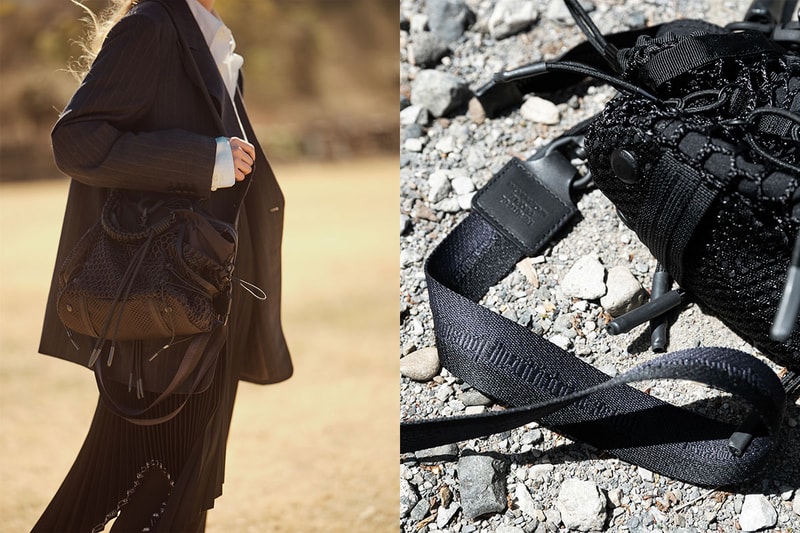 バッグ側面には2種のメッシュを重ねたダブルレイヤー構造を採用し、全面がポケットとして機能。内側には複数の小分けポケットに加え、底マチには“隠しポケット”を忍ばせるなど、ストレージ性は極限まで高められています。さらに、バッグ底の2本のテープには折りたたみ傘などを収納することも可能。ハンドルやストラップにも抜かりはなく、ブランドロゴ入りテープや高強度ロープ、コブラ編みのハンドルなど、ディテールひとつひとつに機能が宿っています。