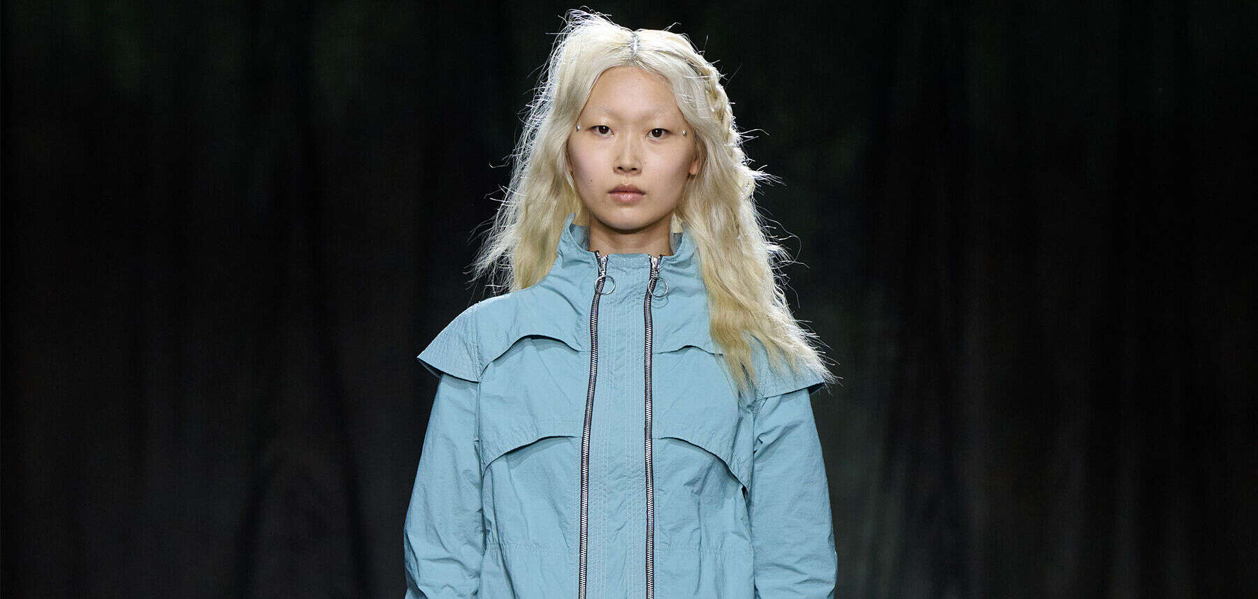 中世ヨーロッパ、中東、アジアの要素と融合させ、鎧を思わせるショルダーディテールや幾何学的なパターンが技術的な生地と組み合わされ、動きによって聞こえるような音を立てました。ブランドのシグネチャーであるサイズを着用者の好みに合わせて調整できる拡張可能なキルティングバッグが復活し、光を捉える銀色の光沢が施されました。