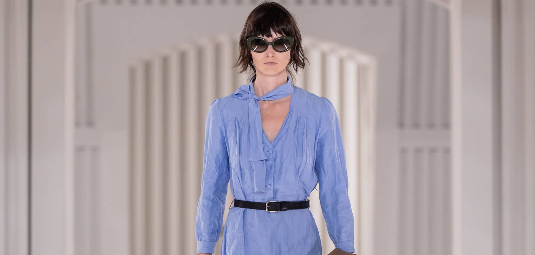 アクセサリーは遊び心を引き出しました。バグアイサングラス、チャームが付いたグラフィックバッグ、タイガーネックレスは、ベージュ、カーキ、草緑、プラムなどの控えめなパレットに、ひねくれた態度をもたらしました。日本のブランド、ミキモトとのコラボレーションにより、貴重なゴールデンパールジュエリーが生み出されました。
