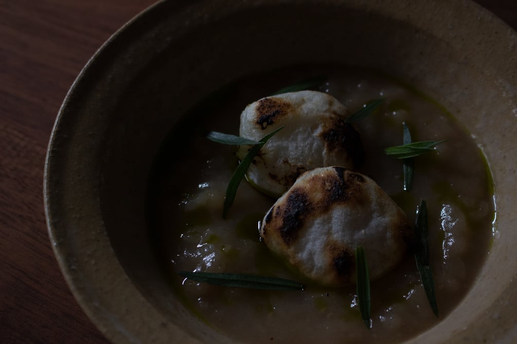 ポップアップ開催を記念して、VAGUE KOBEのカフェ「Tea Bar」と、大阪を拠点に菓子を展開する「餅匠しづく」がコラボレーションメニューを用意。同コレクションから着想を得て製作した「洋なしと白餡のぜんざい 2種の中国茶のセット」(2800円)を提供します。