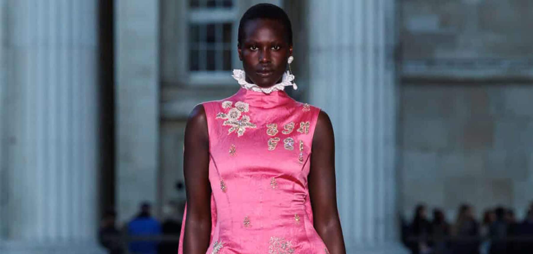 このデザイナーの各コレクションへの研究は深いです。SS26では、1890年代のヴィンテージの生地やレースをいくつかのルックスに取り入れました。しかし、ストーリーテリングが服を引き立てることを忘れることはありません。