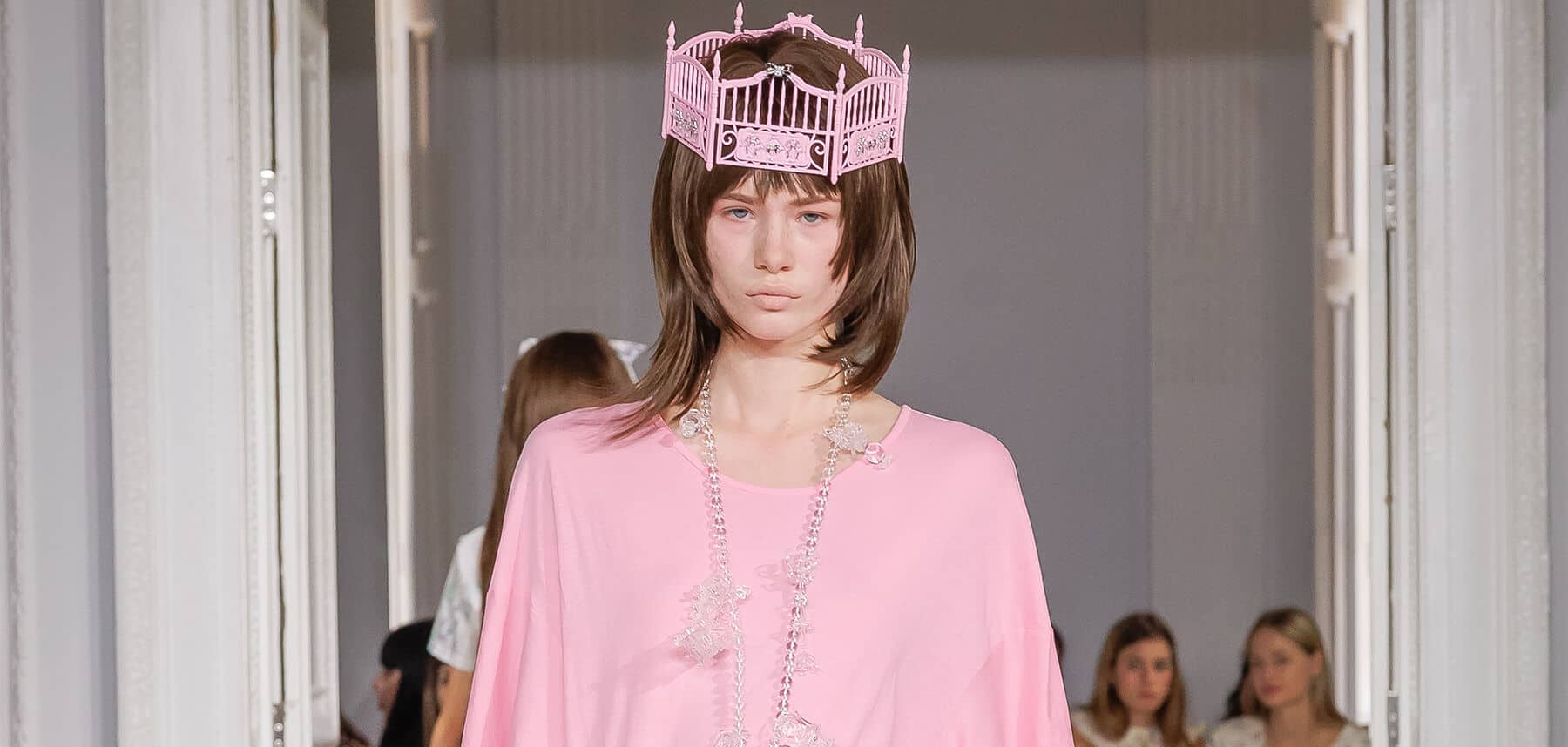 アシュリー・ウィリアムズのSS26ショーでは、かわいらしさとクリニカルが夢のような恋愛を演出し、キャンディーカラーのキッチュな世界が織り成されました。綿製の祖母のワンピースに戦術ベストが組み合わされ、病院のガウンのように刺繍されたベビーブルーボディスーツやトイレットペーパーバングルが、家庭の儀式のお守りのようにランウェイを飛び交いました。それは空想の郊外、しかしファッションとして完成されたものでした。