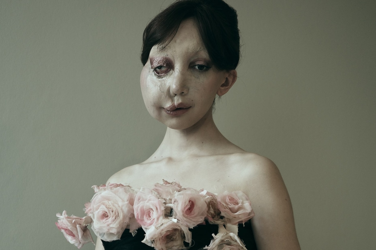 ルック自体は、クラシックなクチュールのシルエットと基準を覆すものでした。ピンクのオフショルダーのツイードセットはほつれたエッジで崩れ、黒いチュールのガウンはほつれてバラで覆われ、控えめなスカートスーツは高い肩と腰を巻き込んでエイリアンのような比率にまで形作られました。ランウェイでは、リリーがバスト周りに手染めのシフォンのバラを飾った黒いチュールのボールガウンを着用し、ノートではダルトンとバスカランが彼女を「私たちを毎日インスパイアする極端な美の中の恐れ知らずな性質をチャネリングするスター」と称しました。
