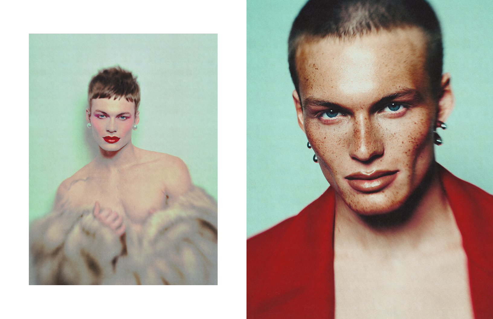 Oak SmithはこのSchön!エディトリアルで、ヘアメイクを担当するRio Translado、ファッションを手掛けるLope TrujilloによってスタイリングされたHugoなどのルックスで撮影されました。