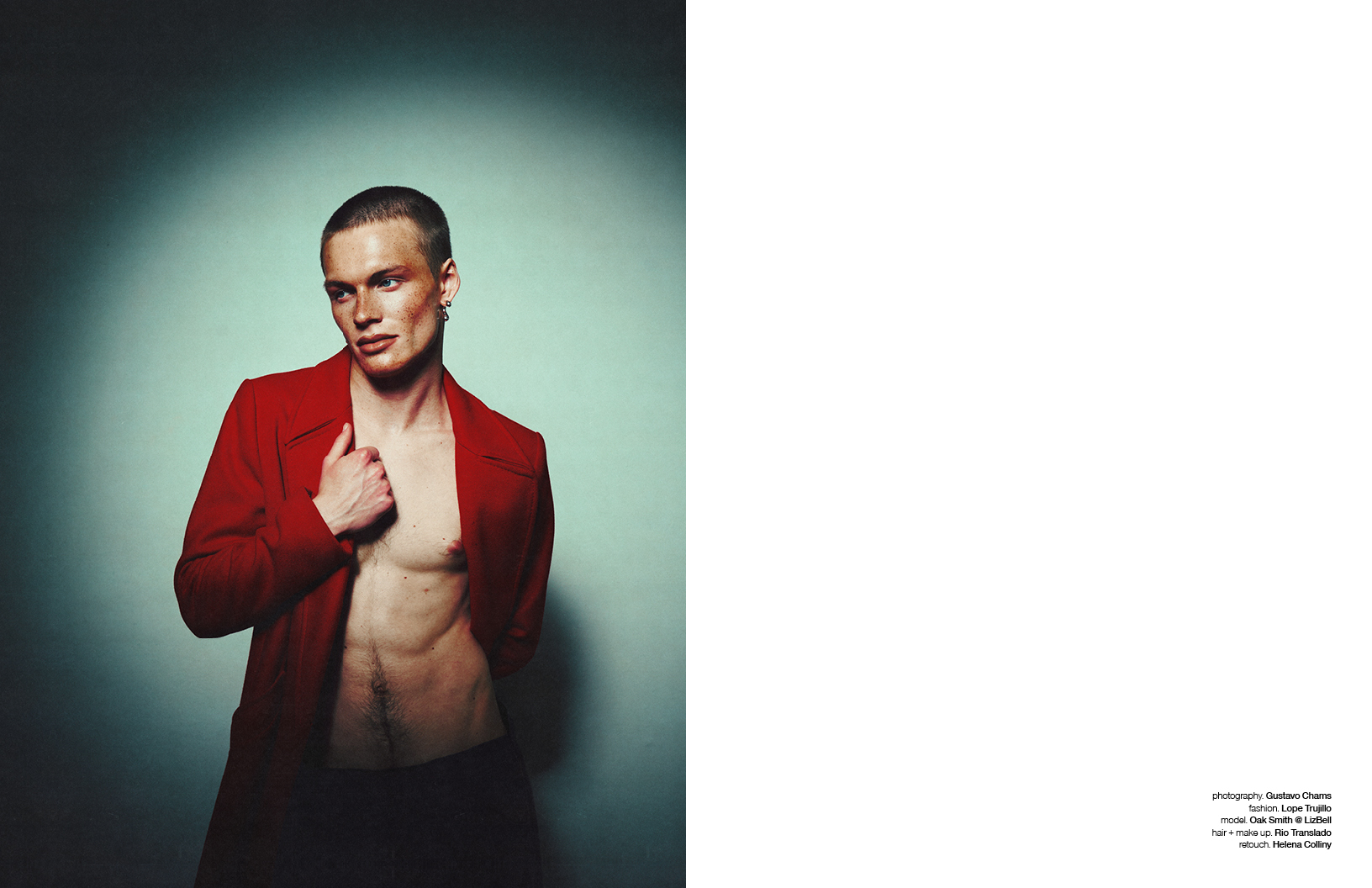 Schön!マガジンで公開されたこのエディトリアルは、Gustavo Chamsによって撮影され、Lope Trujilloによってファッションが手掛けられ、Oak Smithがモデルを務め、Rio Transladoがヘア+メイクを担当しました。