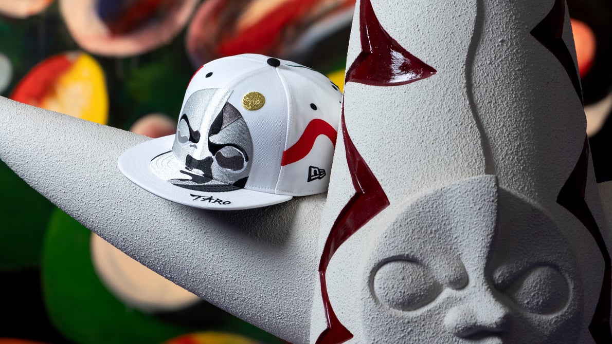コラボコレクションでは、岡本太郎の代表作「太陽の塔」「明日の神話」「みつめあう愛」をフィーチャーしたアイテムを展開。「59FIFTY®」をはじめとするヘッドウェア(4400〜1万2100円)、ロングスリーブTシャツやジャケットなどのアパレル(7920〜4万1800円)、ショルダーバッグやポーチなどのアクセサリー(4400〜6600円)をラインナップする。