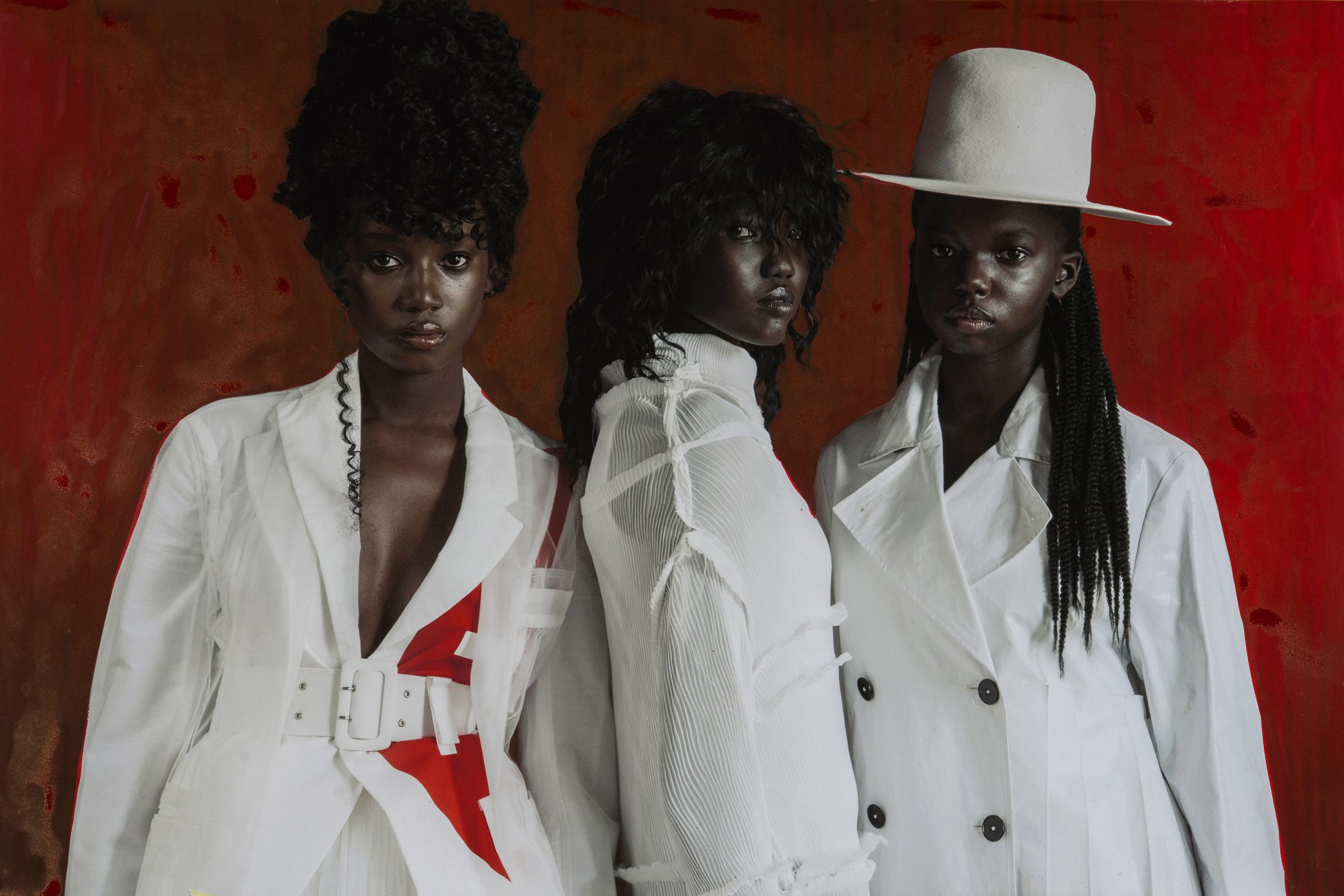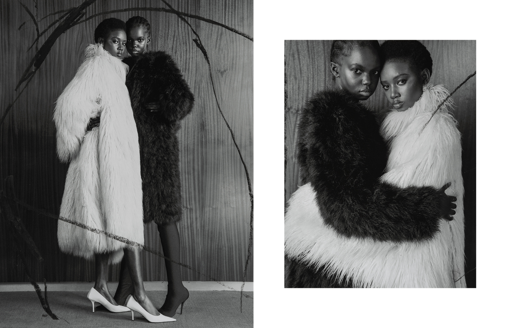 Crimson red flashes throughout this Schön! editorial produced by photographer Maximilian Schwarz with direction and cinematography by Reza Norifarahani. Fashion is by Sebastian Burch who dresses Iadria, Magatte and Aluk in looks by Comme des Garçons, Jil Sander, Prada and others, with hair and make up by Tanja Gravina.
