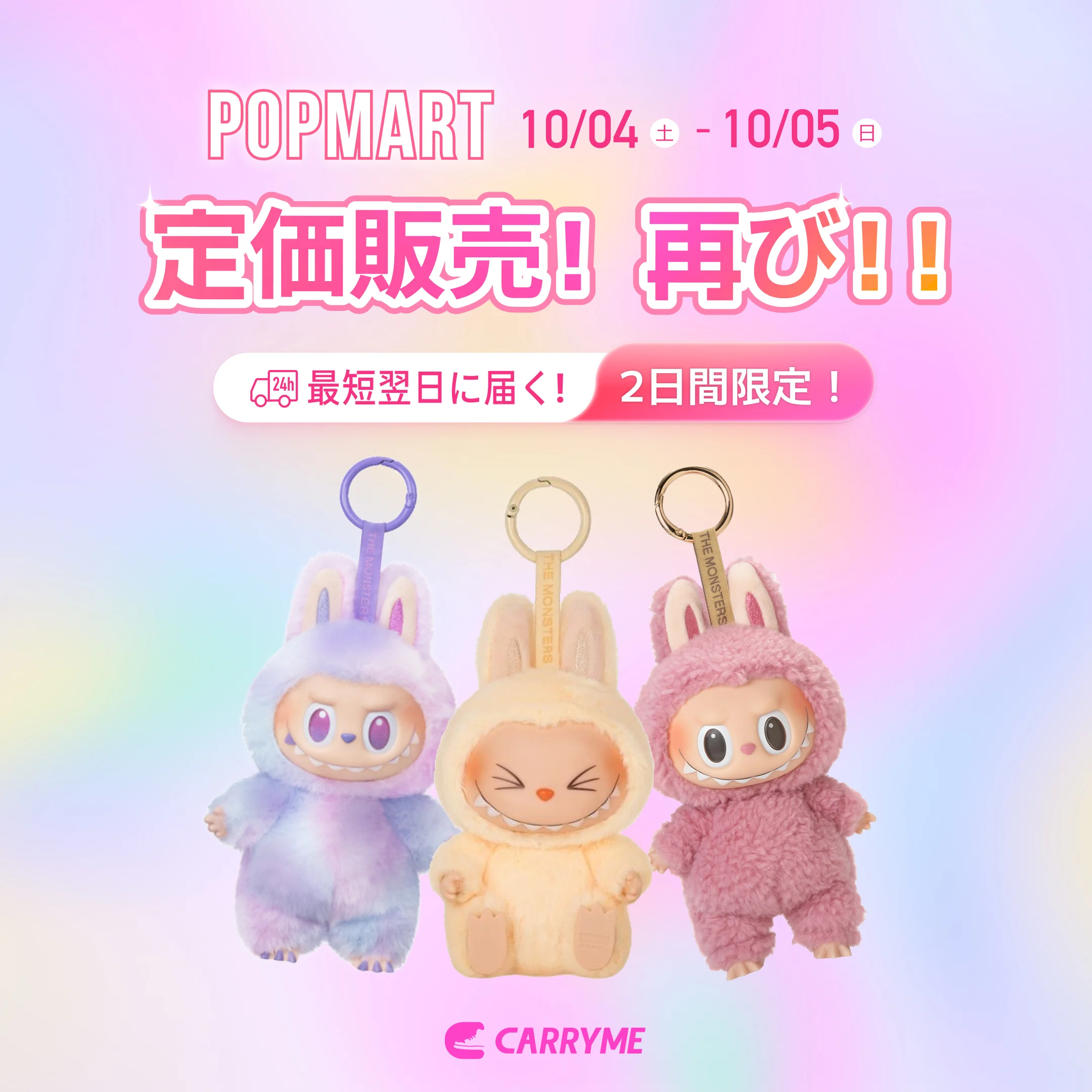 スニーカー・アパレル・トレカ・ゲーム・ホビーの売買・鑑定プラットフォーム CARRYME(キャリーミー)でPOP MART(ポップマート)のLABUBU(ラブブ)を定価で購入できるキャンペーンが、2025/10/7(火)~2025/10/13(月・祝)まで開催中です。