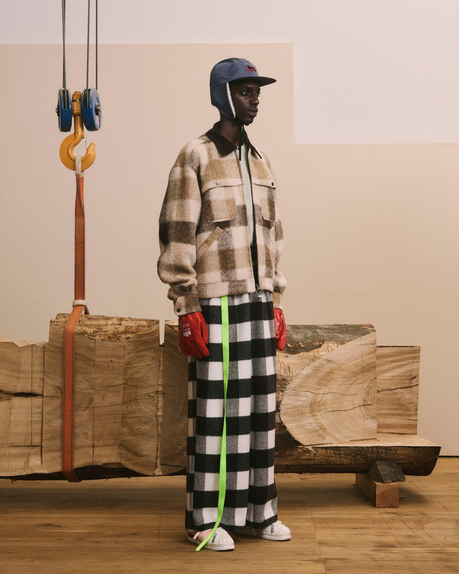 タイトルは「田園のそよ風」で、このコレクションは極端なパフォーマンスから離れ、より内省的で田園的なムードに傾いています。これは、ウールリッチの190年のアメリカのアーカイブの頑丈さと、日本のデザインの緻密で禅的な精度を融合するというラベルのシグネチャームーブです。