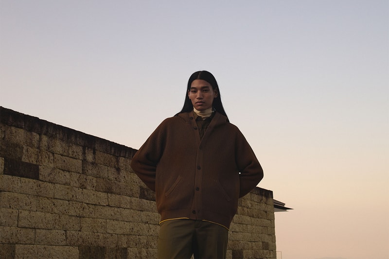 今回のコラボでは、〈BATONER〉のシグネチャーである7ゲージ片畔編みで仕立てたニットフーディー(81,950円)とニットクルーネック(55,000円)の2型が登場。素材には未防縮ウールと再生ポリエステルを組み合わせたコンフォートヤーンを使用し、現代的な機能性を追求しています。サイドパネルには異なる組織で編み立てた生地を採用し、快適な着心地とモダンなスタイルを両立させています。