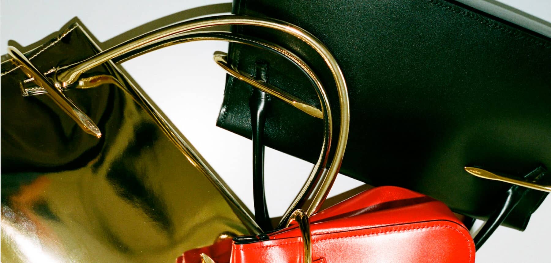 ピンチバッグは、ブラック、アイボリー、リップスティックレッド、ジンジーアシッドイエロー、またはスペースエイジ風のミラーメタリックで提供されている。サイズは?3つのサイズがあり、ミディアムとスモールにはひそかに内蔵されたミラーが隠されている(口紅チェックは他人のビジネスではないべきだから)。
