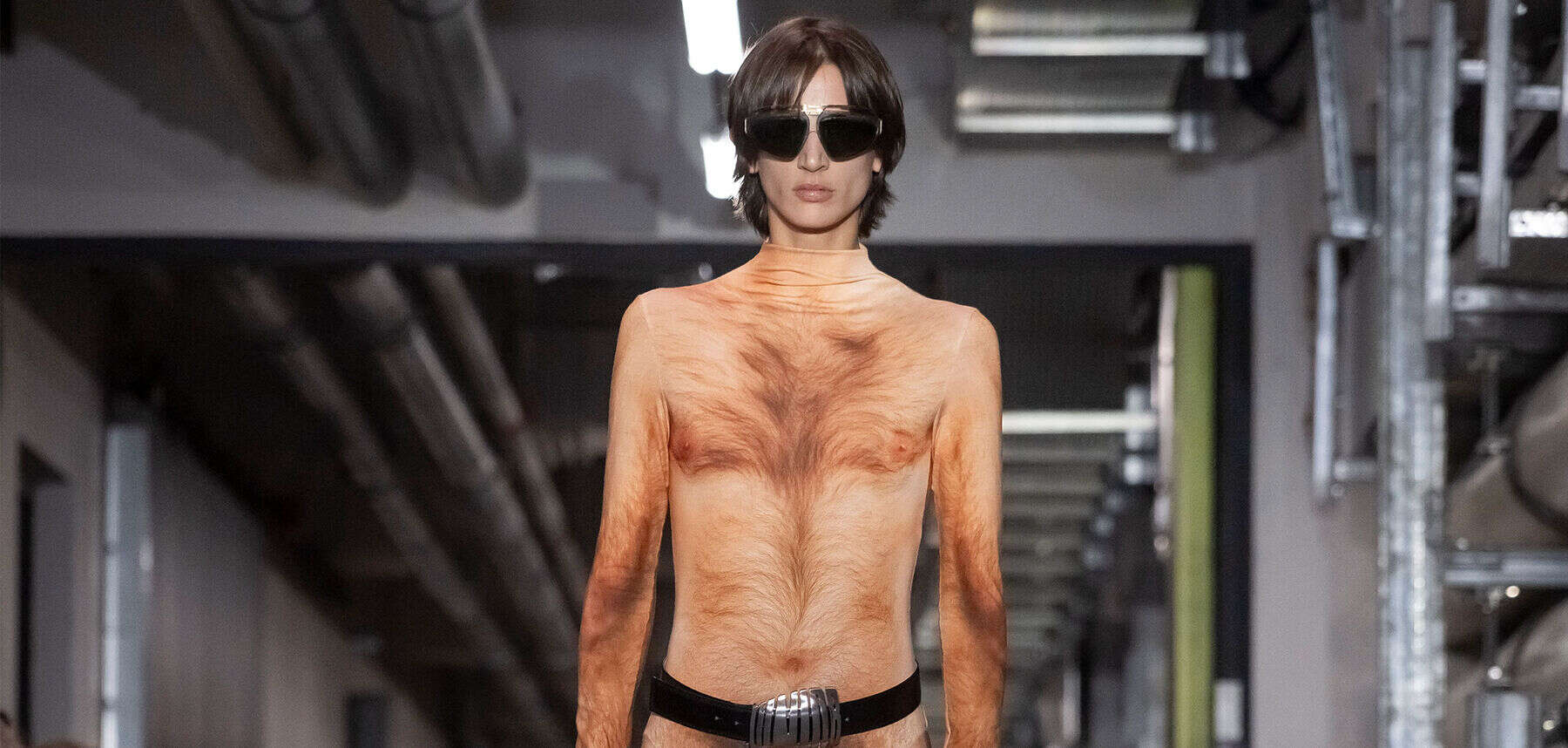 多分、人々はジャン・ポール・ゴルチエがどれほど衝撃的だったかを忘れてしまったのかもしれません。彼を enfant terrible(恐ろしい子供)と呼んだのは何ものでもないので、デュラン・ランティンクが、毛深く裸のフルフロンタルな男性の体がプリントされたボディスーツを送り出した時、まるで今指揮を執るブランドの持つ固有の無遜厚さといたずら心を醸し出しているようでした。 彼のデビューショーは、衝撃、スリル、そして大胆なシルエット操作に満ちていて、JPG は前列から見守っていたにもかかわらず、その様子に幸せな涙を流しました。