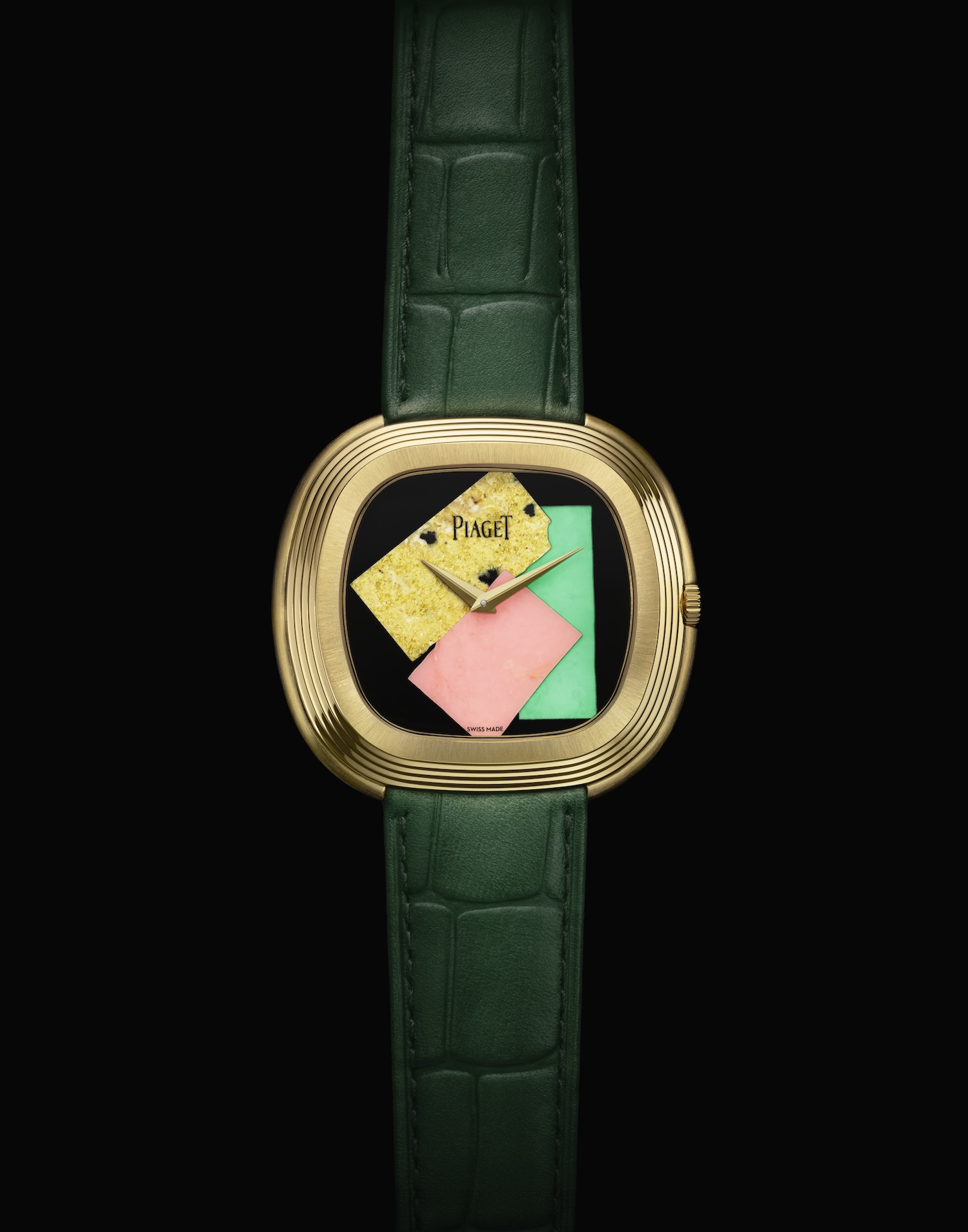 Sivrière saw this as the perfect opportunity to deploy the Maison’s full spirit, reviving a rare craft to create an exceptional experience. Instead of a printed dial, Piaget employed one of its most cherished and difficult métiers d’art: stone marquetry. This was, perhaps, the team’s greatest challenge since they had to transform a classical craft into modern Pop Art.