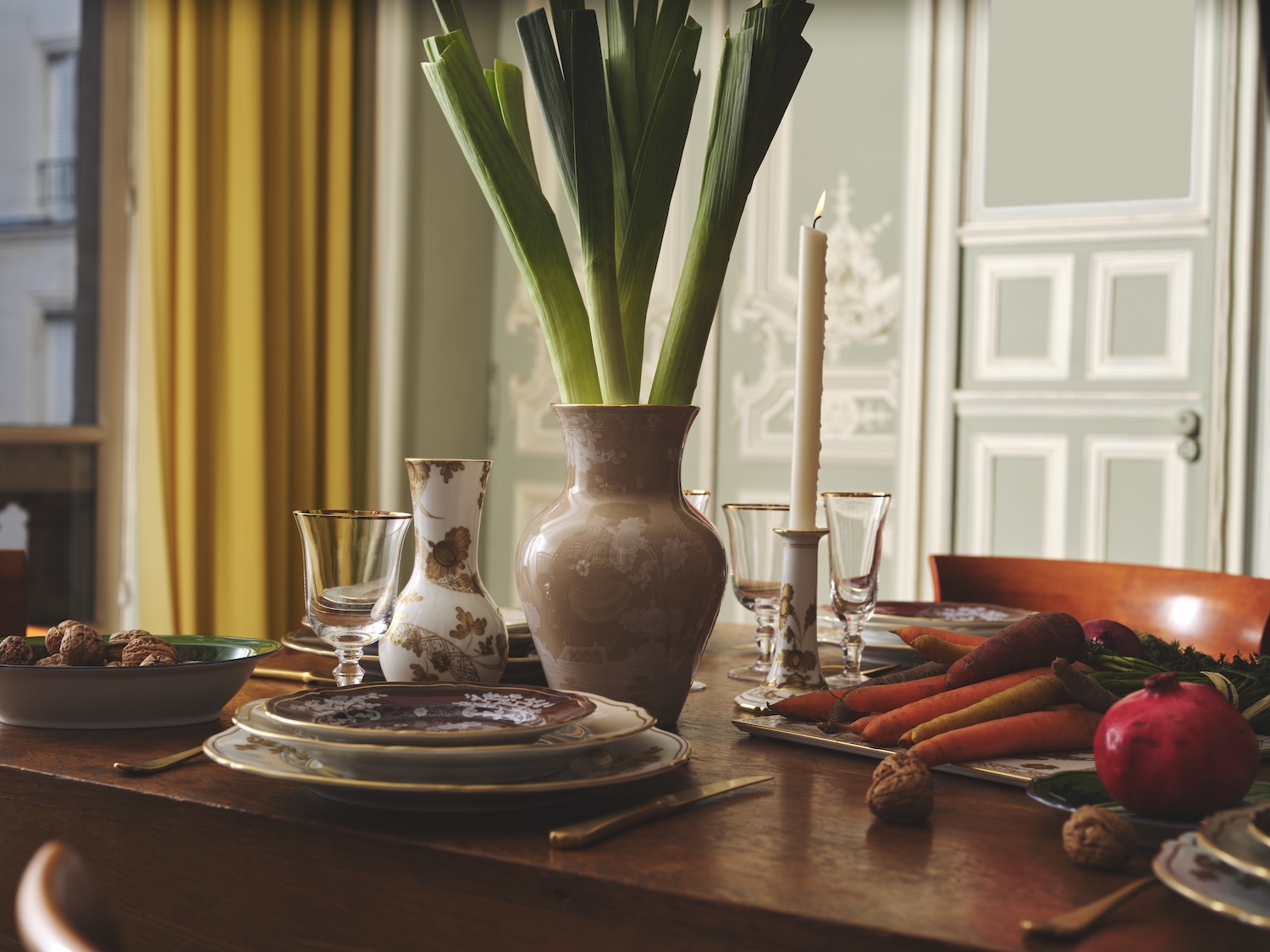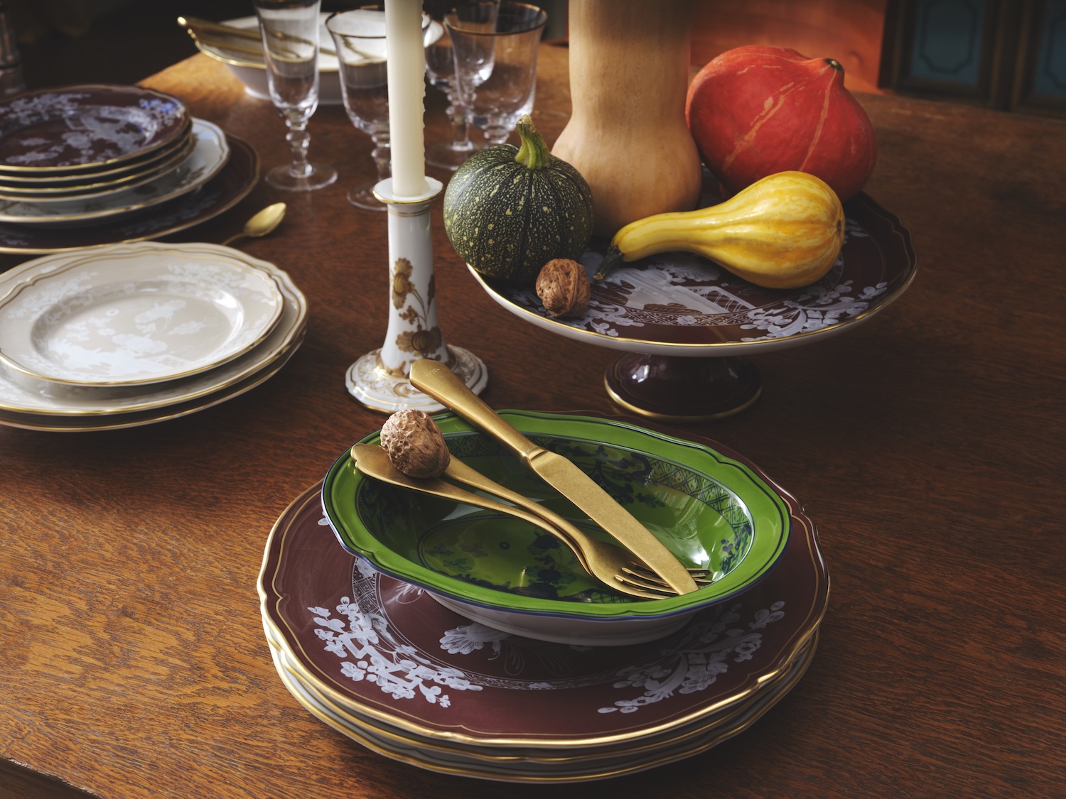 秋が深まると、サンクスギビングが創造的な伝統への扉を開きます。ブランド最も象徴的で華やかなパターンであるオリエンテイタリアーノがスポットライトを浴びています。この鮮やかな、中国風の花柄は、リッチなマラカイトグリーンと深いアウルムゴールドで、予期せぬディテールと混ぜ合わせられ、遺産と衝動を融合することを奨励しています。