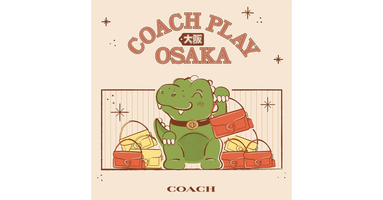 新店舗は、竹や木などの自然素材を用いたミニマルな和の要素と、大阪の街を象徴する鮮やかなネオンやアートのにぎやかさから着想したデザイン。エントランスではレトロなフォントで描かれたコーチのサイネージがゲストを迎え、懐かしさとモダンな感性が融合した世界観を演出するほか、エントランス横に1970年代のアーカイヴを再解釈したブランドのアイコンバッグでZ世代を中心に支持されている「タビー(Tabby)」を陳列する。店内ではコーチのアイコンキャラクター、恐竜の「レキシー(Rexy)」の大きなオブジェやグラフィックアートが彩るほか、ポップな感性と日本の建築美をかけ合わせた家具を備え、伝統とモダンが共存する空間を創出するという。