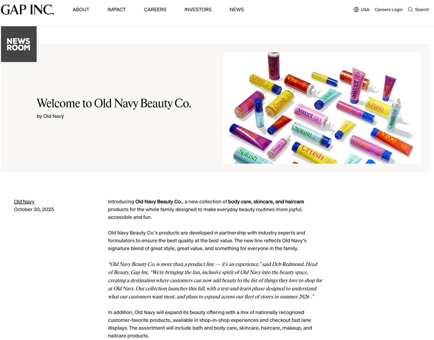 新ビューティコレクション「Old Navy Beauty Co.」の立ち上げにより、オールドネイビーはファッションだけでなく、ビューティ領域でも注目を集めることが期待されます。