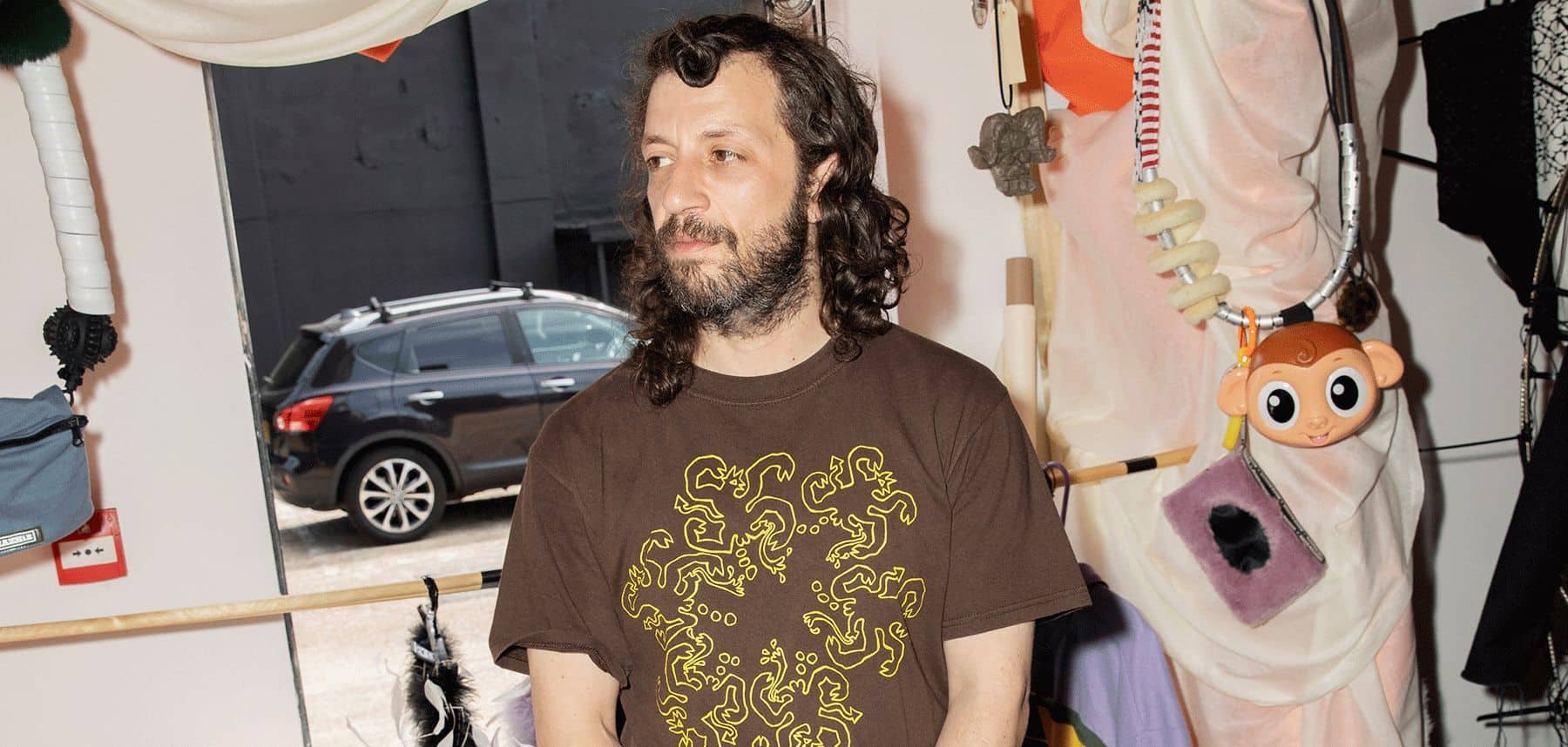 反対側には、エド・カーティスがおり、彼の手描きTシャツやスワーリーフーディーは、彼が「究極のファッションアートアタック」と呼ぶ鮮やかな衣装の一部を構成しています。そこには、クラスティなレイヴウェア(Jonty K. Mellmann)、変異体の赤ちゃんのヘッドマーチ(4FSB)、シシーなフロックやTシャツに縫い付けられた鼻(Pig Ignorant)、そしてBenny Andalloによるジャミロクワイのジェイ・ケイを羨ましがらせるであろうような大きな毛皮のトップハットなどがあります。