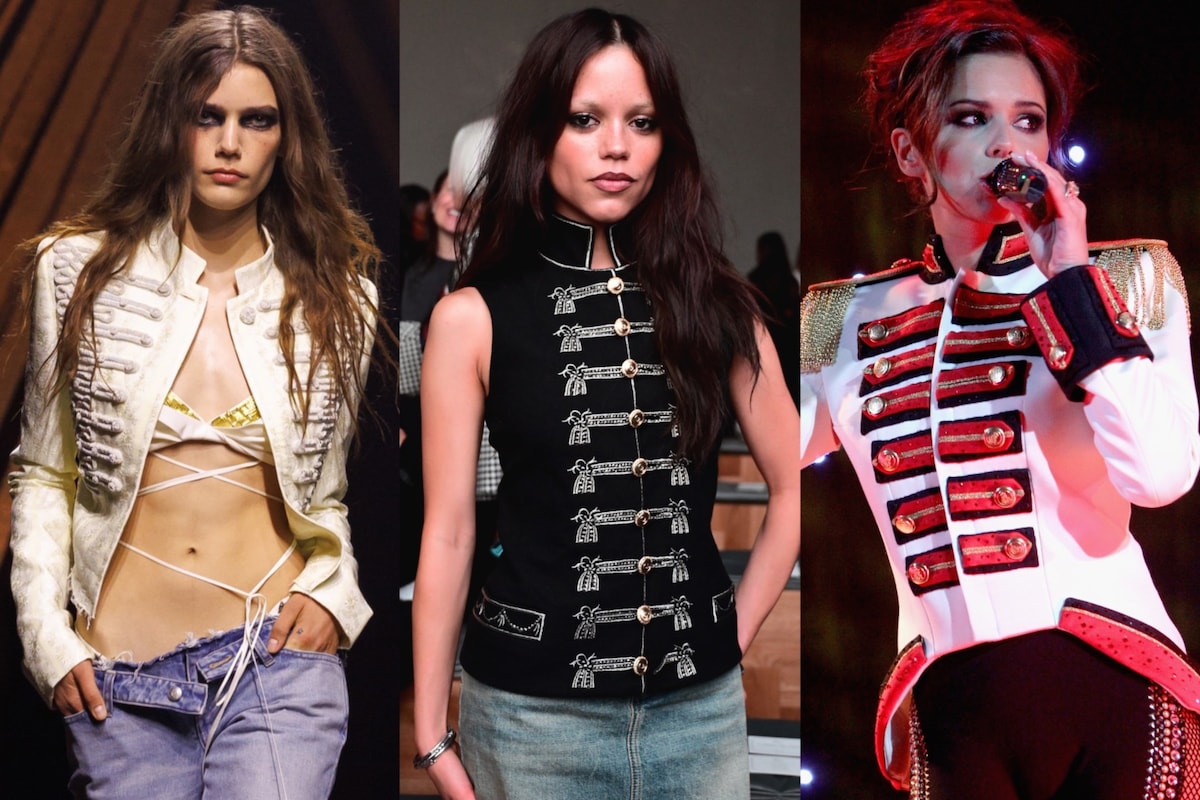 それ以前から、ジャケットの再来はしばらくの間浮上していました。2025年初めからXのインターネットコメンテーターである@blondiejpgがカムバックを予測し、過去数年間でスタイルインスポアカウントに定期的に現れていました。それにもかかわらず、この秋冬シーズンはその正式なカムバックを迎えるものです。TikTokの編集を見る限り、ノスタルジアが推進力となる可能性があります。オンラインでジャケットに関するほとんどの言及は、2005年のグラストンベリーでのケイト・モス、クリストフ・デカーニンの初期の2010年代のバルマンコレクション、同時期のサンローランのランウェイなどの写真とともに伴われています。このように、ジャケットは1つ以上の特定のファッションノスタルジアの時期に関連付けることができます。つまり、2000年代半ばの「インディースリーズ」と2010年代の「スワッグ」であり、過去に執着する文化において再評価される条件を整えています。目立つことが通貨であり、過去と現在の緊張を作り出すことがオンラインで注目されるファッションの景観において、18世紀の兵士のように服を着たホットなガールよりも注目すべきものはありません。