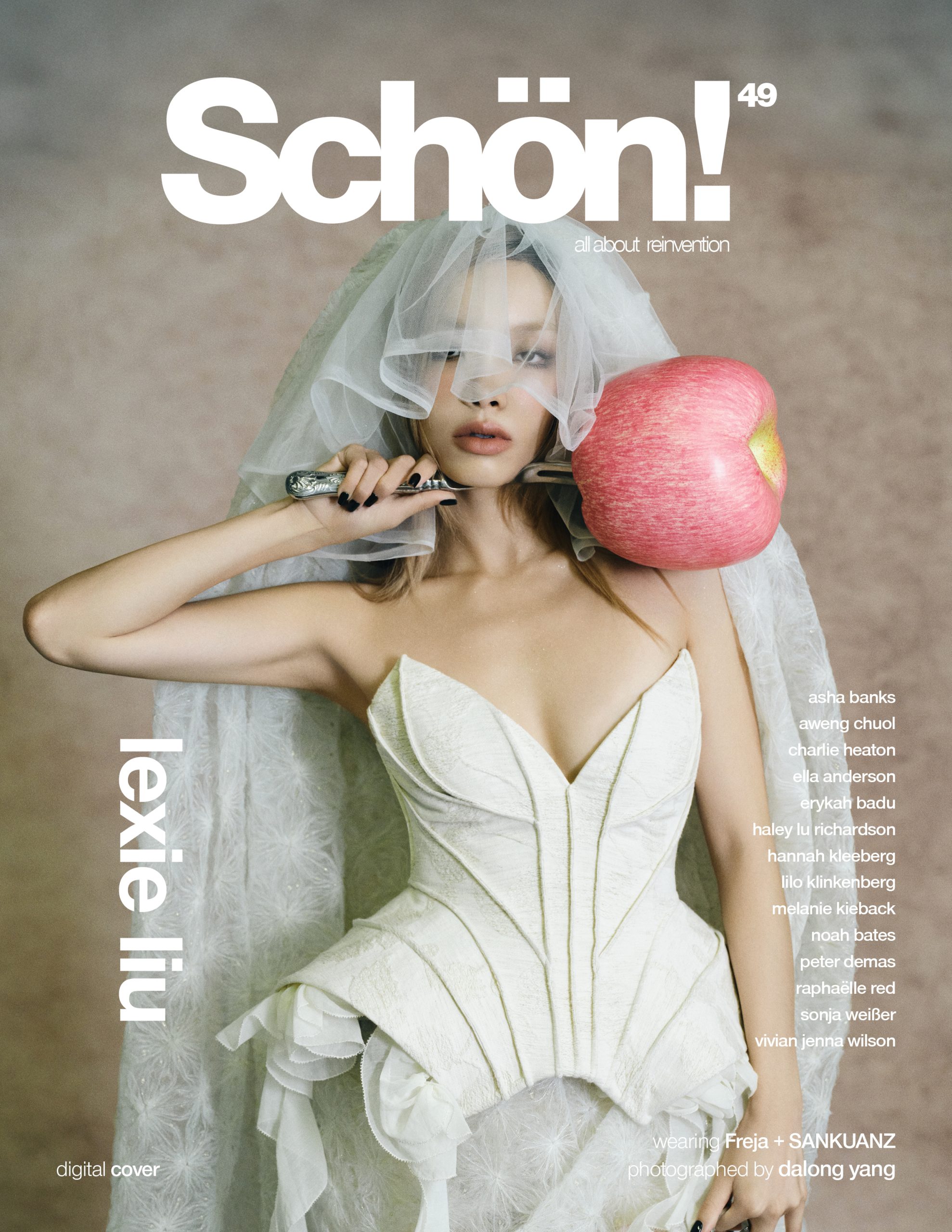 この記事はSchön! 49でご覧いただけます。レキシー・リューがFreja + SANKUANZを身に着けています。