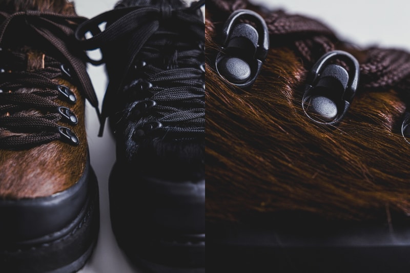 今回の別注では、〈DIEMME〉としては初となる毛足の長いカーフヘア素材素材をアッパーに採用。クラシックなワーク/アウトドアの佇まいにラグジュアリーな質感とトレンド感を共存させている。カラーは深いブラウンとオールブラックの2色展開。さらに付属のシューレースには、標準の丸紐に加えて存在感のあるファットシューレースを同梱し、スタイリングやムードに応じて印象を変えられるギミックも嬉しいポイントだ。