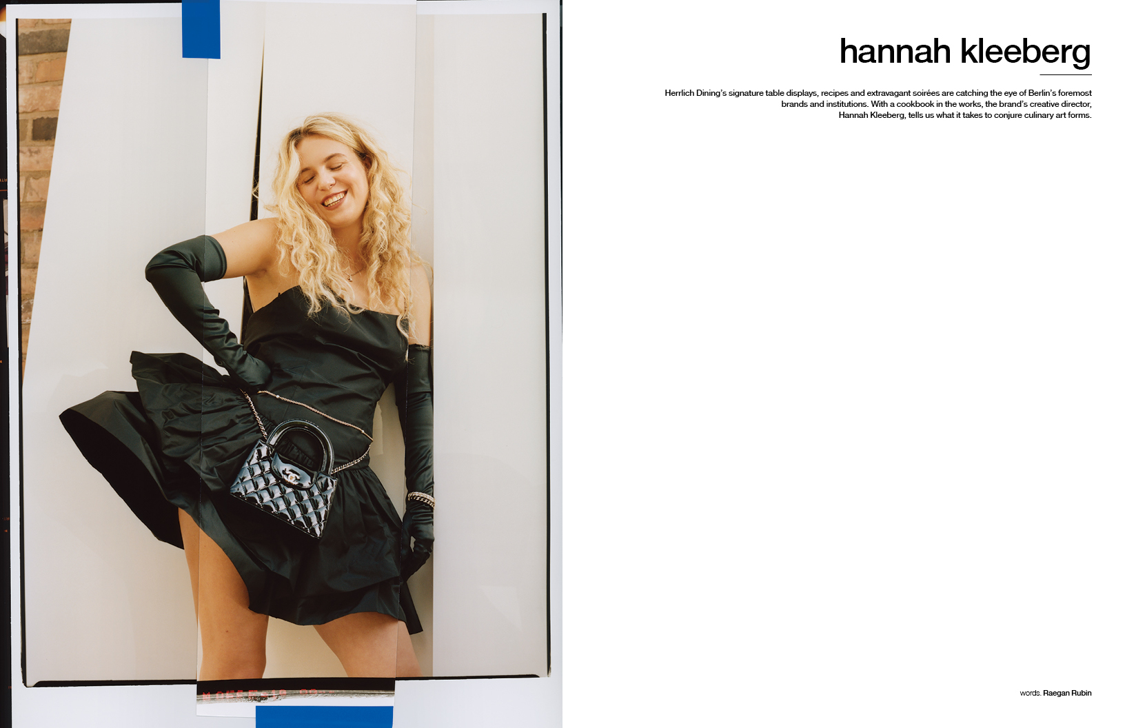 ハンナ・クリーバーグは、Herrlich Diningの創造的な力として、急速にベルリンで最も求められる料理アーティストの1人となりました。たった3年で、彼女の女性が運営するスタジオは、パンコートハンガーからイチゴのマルガリータの彫刻まで、ブランドのAdidas Originals、Oatly、Google Pixel、Chloé、Zalandoなどを引き付けました。彼女は、自分のCHANELを身に着けていますSchön! 49物語のために私たちに語ります。「私が’健康的な’レシピやイベントをするように求められると、私は’私にはこの質問をする人ではありません’と言います」と彼女は言います。「私の役割は、カロリーを数えることが実際には重要でないことを理解するのに勇気を持たせることです」と彼女は言います。「私は自分のレシピにどれだけのカロリーが含まれているかさえわかりません」と述べています。