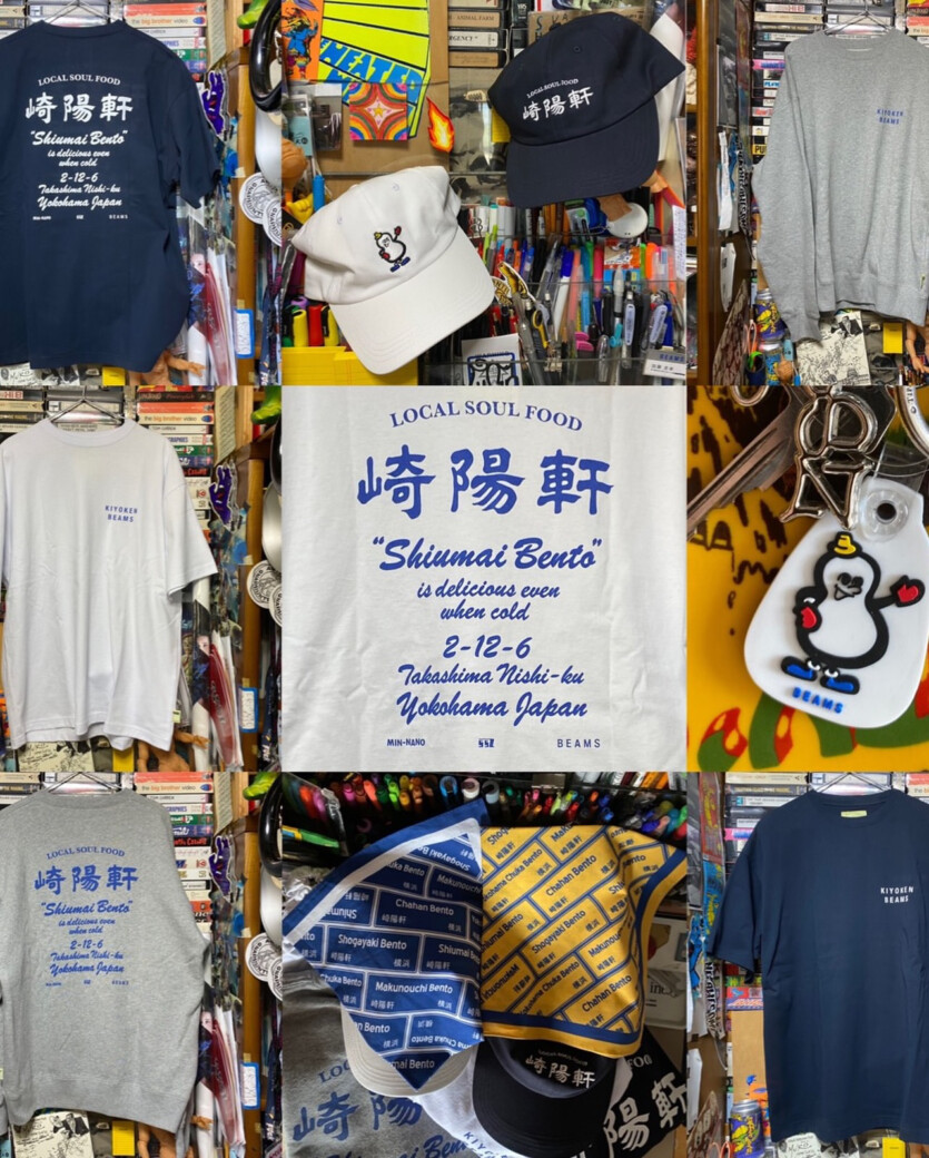 今回のコラボレーションは「シウマイ弁当」をテーマにした特別企画で、SSZのオリジナルボディにMIN-NANOらしい王道グラフィックを落とし込んだスウェットとTシャツ、さらにMIN-NANOを象徴するSBQバンダナの計3アイテムを展開します。加えて、崎陽軒とSSZの取り組みから、シウマイに欠かせないひょうたん型の醤油入れ「ひょうちゃん」をモチーフにしたキーホルダーとキャップ、崎陽軒のロゴを配したキャップも登場し、全6型のラインアップとなっています。