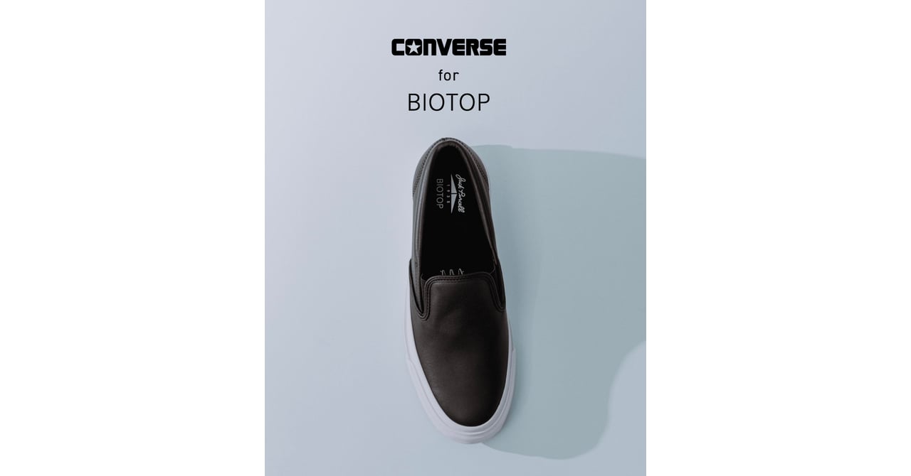 「ビオトープ(BIOTOP)」が、「コンバース(CONVERSE)」との別注企画「コンバース フォー ビオトープ(CONVERSE for BIOTOP)」から新作モデルの「JACK PURCELL 1935 SLIP-ON / BT 」を12月26日に発売する。ビオトープ各店と公式オンラインストアで取り扱う。発売に先駆けて、12月5日から公式オンラインストアで予約を受け付ける。