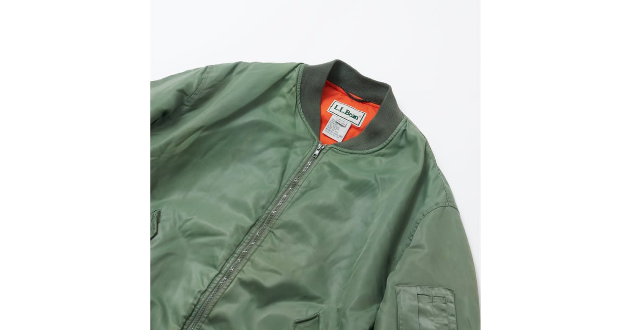 1912年に創業し、「ボート・アンド・トート」をはじめとした数々の名作を世に送り出してきたアメリカのアウトドアブランド、エル・エル・ビーン。当然、アウトドアアイテムがラインナップの中心ですが、今回ピックアップしたのは言わずとしれたフライトジャケットの代名詞的存在 MA-1をサンプリングしたアイテムです。