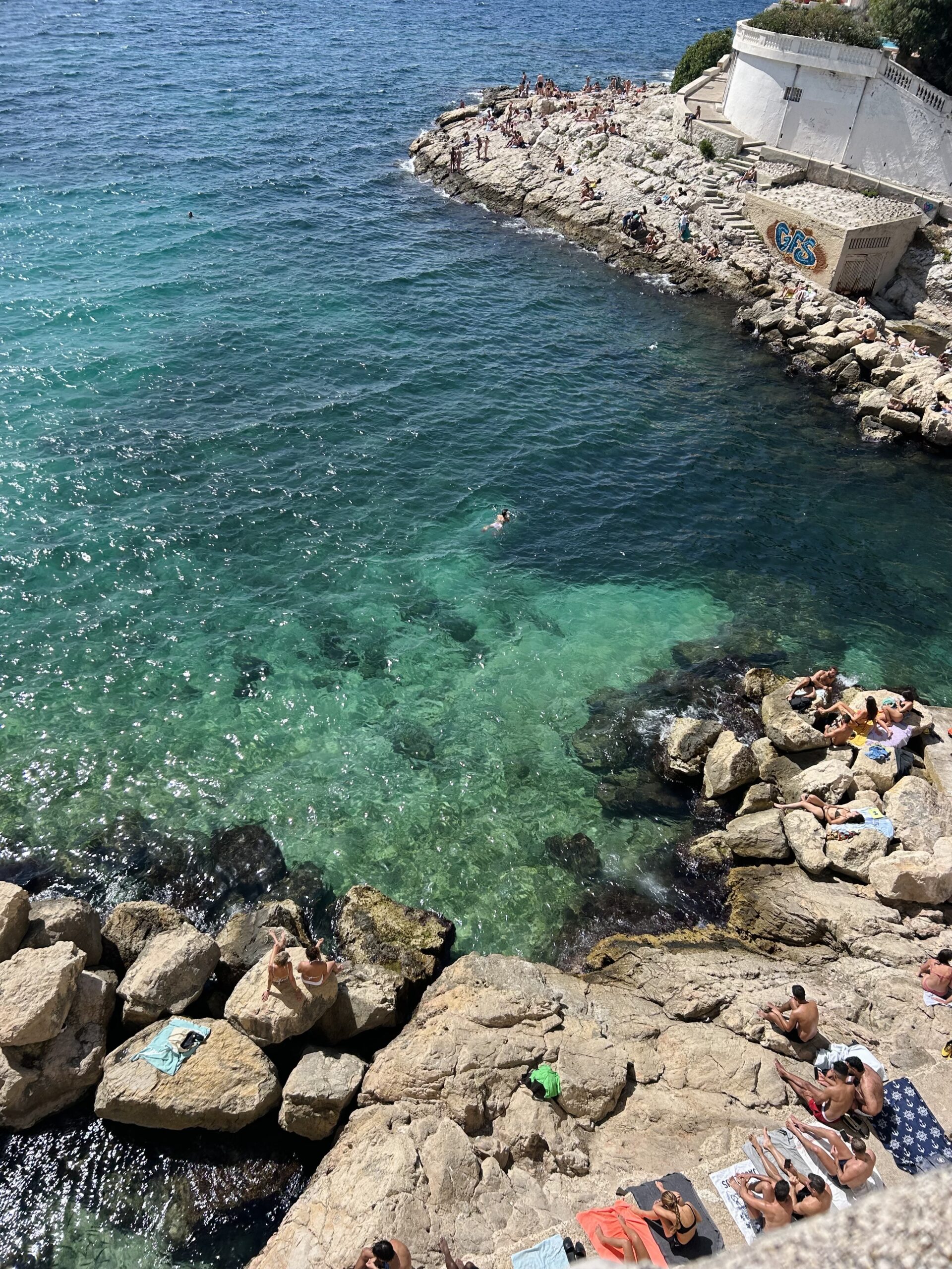 それはあなたのインスタグラムのアルゴリズムだけではありません。過去数年間、マルセイユは国際的なヒップシーンの夏の目的地だけでなく、ジェンゼットのボヘミアンたちの新しい故郷としても人気を集めてきました。クール・ジュリアンの色鮮やかな通りや広場は若者でごった返しています。夜には、屋外のバーテーブルには楽しげに飲む人々が集まり、クラブから古代の街灯が灯る通りにあふれるようにダンスする人々がいます。昼間は、日焼けしたタトゥーの入った腕が岩の上で日