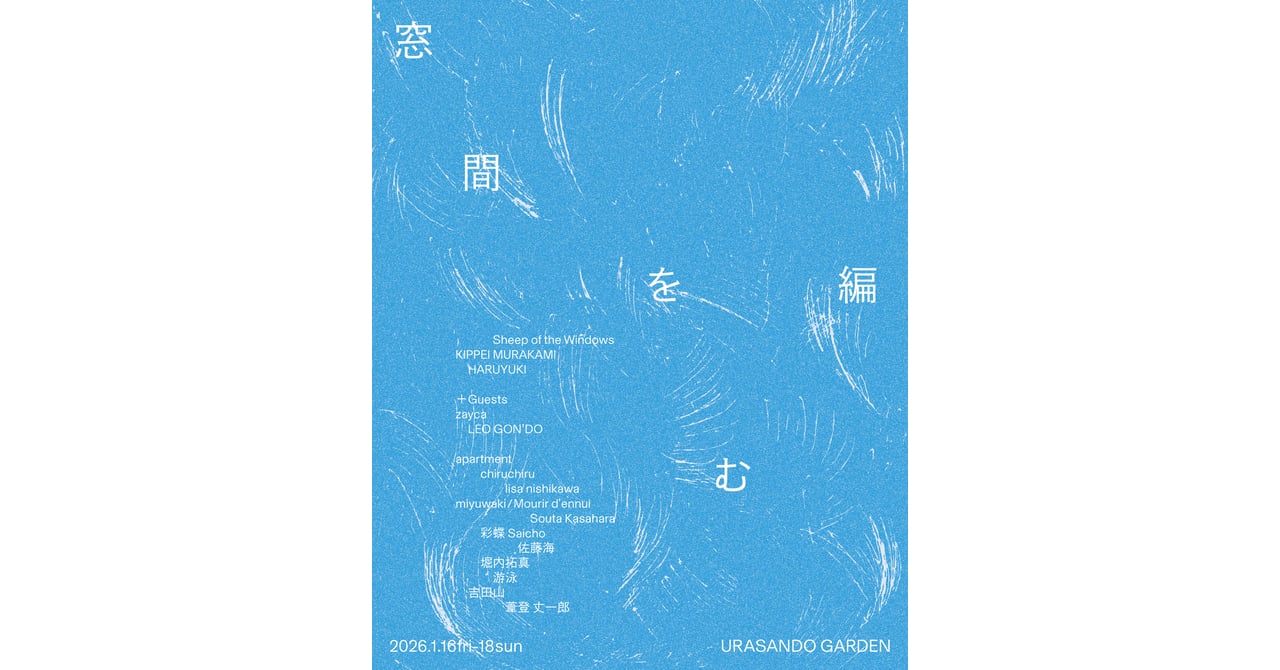 若手ニットブランド「シープ オブ ザ ウィンドウズ(Sheep of the Windows)」、「キッペイ ムラカミ(KIPPEI MURAKAMI)」、「ハルユキ(HARUYUKI)」が、東京・表参道の裏参道ガーデンで合同展示会「窓間を編む」を開催します。会期は1月16日から18日までです。
