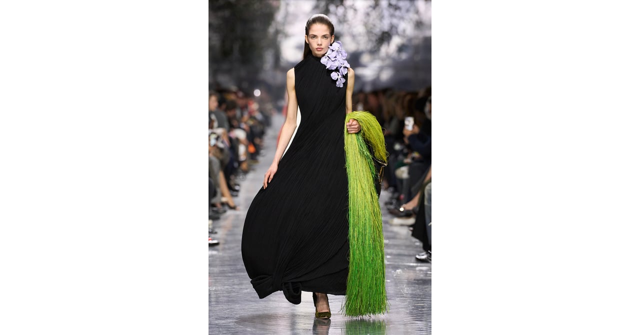 ジョナサンは、クチュールを「現在の検証と再構築を通じて、新しいかたちで捉え直すためのレンズである」と定義。全63ルックからなるコレクションで、自然と技巧、そして新旧の融合を核に据えた。シルクジョーゼットに繊細なプリーツとツイストを施したロングドレスにはじまり、流れるようなラインや身体に沿って描かれるドレープが、曲線と動きを際立たせる。陶芸家マグダレン・オドゥンドの擬人化された陶磁器も着想源となり、彫刻的なシルエットを創出した。