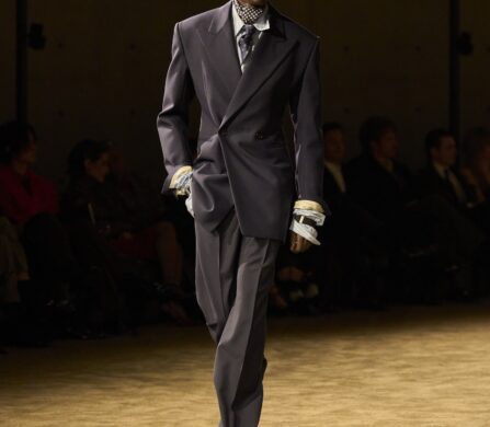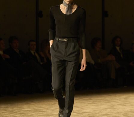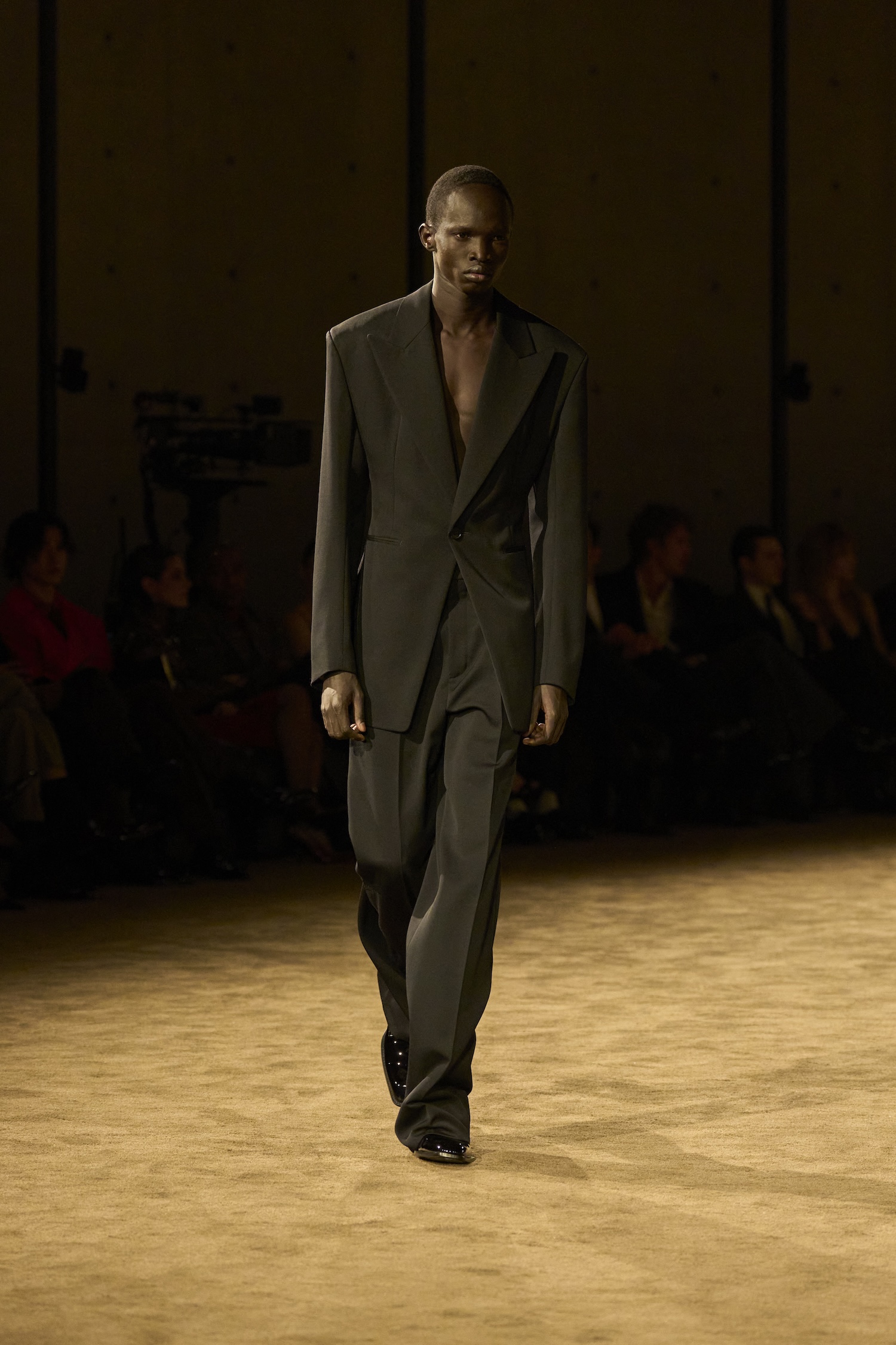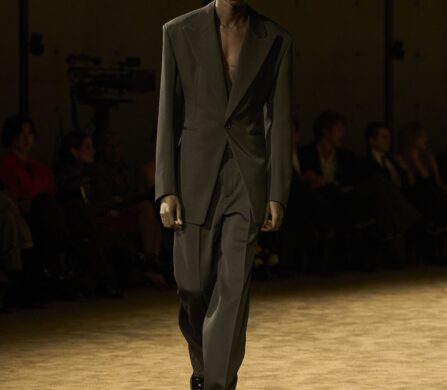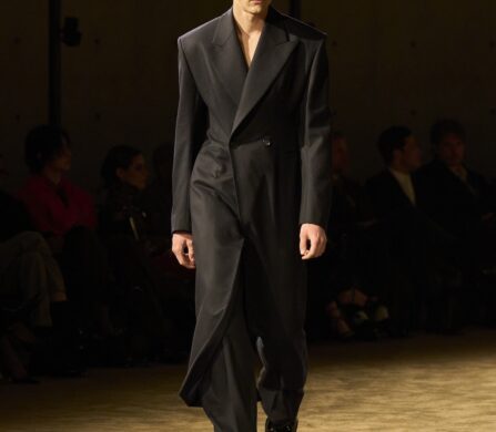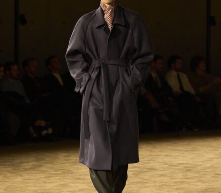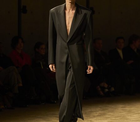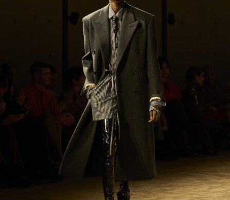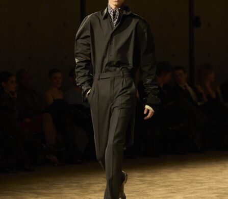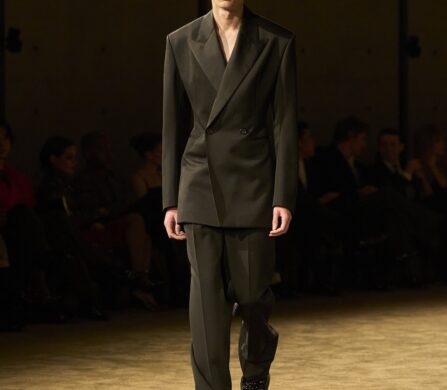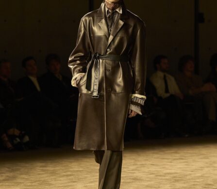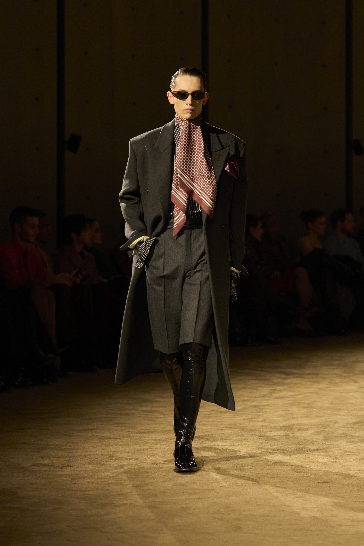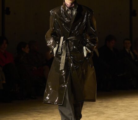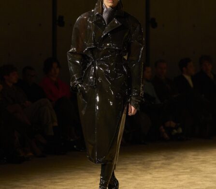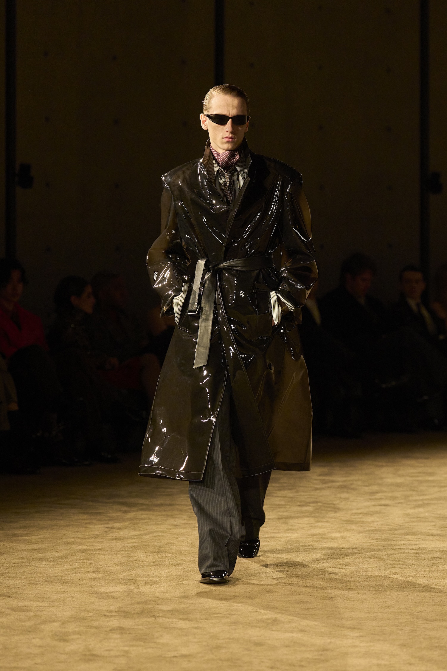 Sharp shoulders were used to cloak the wearer’s uncertainty, while the signature smoking tuxedo was cut with such precision it felt like a protective shield against the world. One of the most daring pieces was a transparent, glossy trench coat that plays with the house trope of the morning after the night before, acting as a snapshot of human complexity by highlighting how we reveal and conceal ourselves.