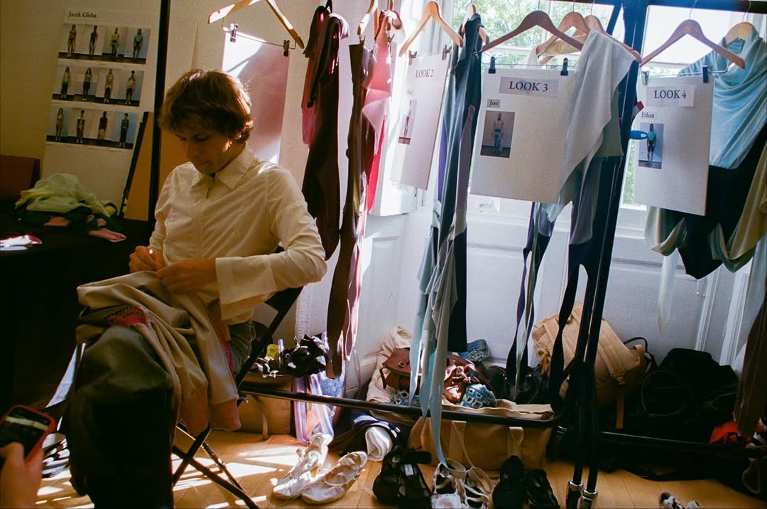 ファッションイーストに再登場するJacek Glebaは、Merce Cunninghamなどの振付家やPatrick Procktorなどの画家からインスピレーションを受けた柔らかな生地を通じて親密さと動きを融合させる。彼の最終的なMAコレクション、Diaryは、ダンサーVaslav Nijinskyの日記から着想を得ています。