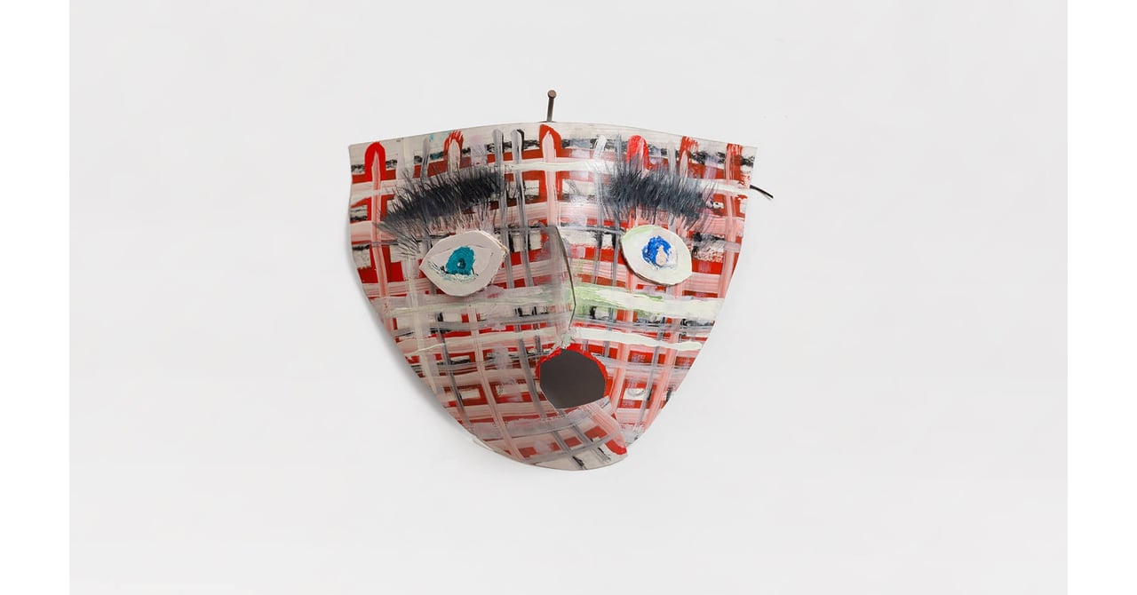Auvrayの制作に繰り返し登場するテーマである「マスク」は細い糸で壁に吊るされ、装身具のような佇まいを見せる。