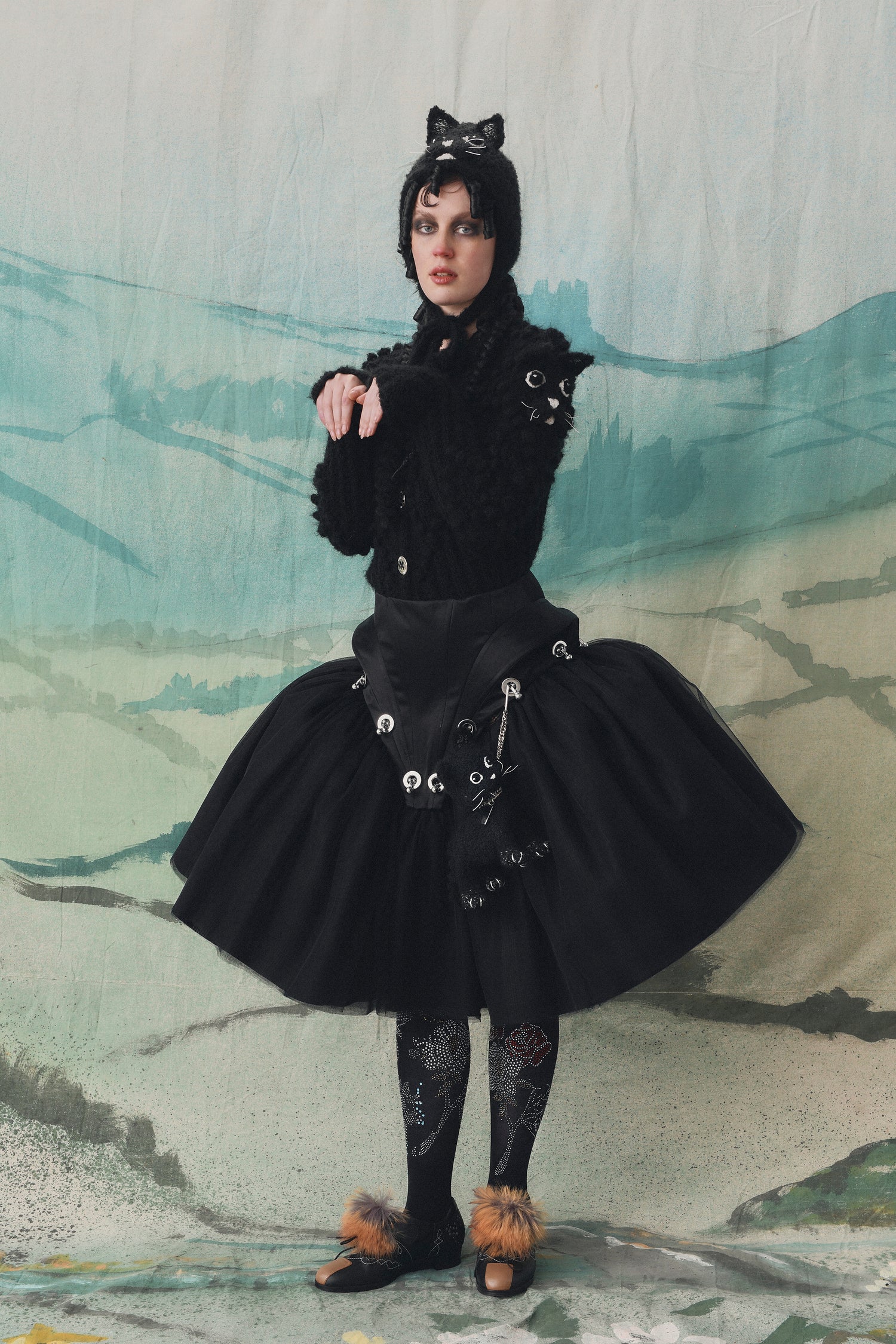 ロンドンファッションウィークでのChopova LowenaのAW26プレゼンテーションは、レジェンシー・ロマンスからゴルフコースの儀式や風変わりな要素まで、蝶々、猫、コルセット、アーガイル、そして何よりも仲間意識の喜びに満ちた魅力的なミックスでした。