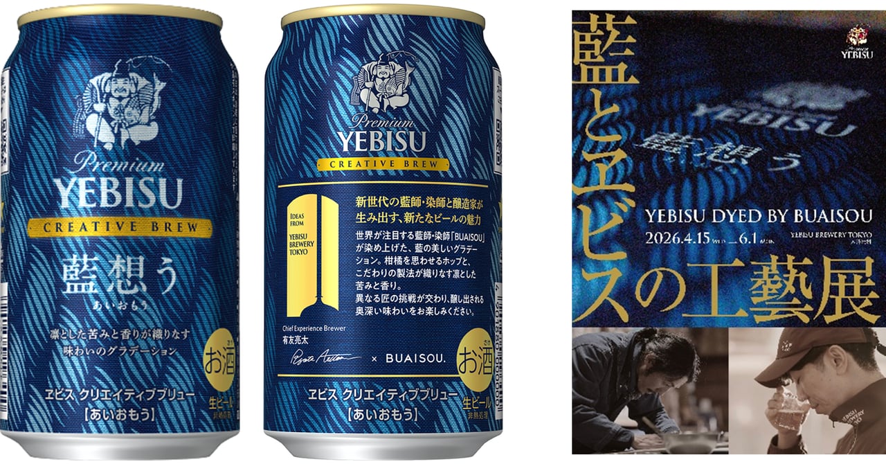 サッポロビールが、藍師・染師の「ブアイソウ(BUAISOU)」とコラボレーションした「ヱビス クリエイティブブリュー 藍想う(あいおもう)」を4月14日に発売します。この新作は、「CREATIVE BREW」の第12弾として、ヱビスが培ってきた技術を活かしながら、新たなビールのおいしさや楽しさに挑戦します。藍染の魅力を伝えるため、藍師・染師ブアイソウの現代的な要素を取り入れ、新しいビールを生み出しました。パッケージには、ブアイソウがデザインした藍染作品を使用し、缶体には藍染の濃淡や生地の質感を表現する印刷技術「Rmagic」を採用しています。