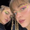 他のところでは、レースのモチーフをあしらった外出用のトラックスーツや、寝ている子猫のプリントが施された再構築されたオフィススカートが特徴です。シルクのヴィンテージ風のパンツの覗き穴は、プラスチックの雲を連想させるベルトの横に置かれています。