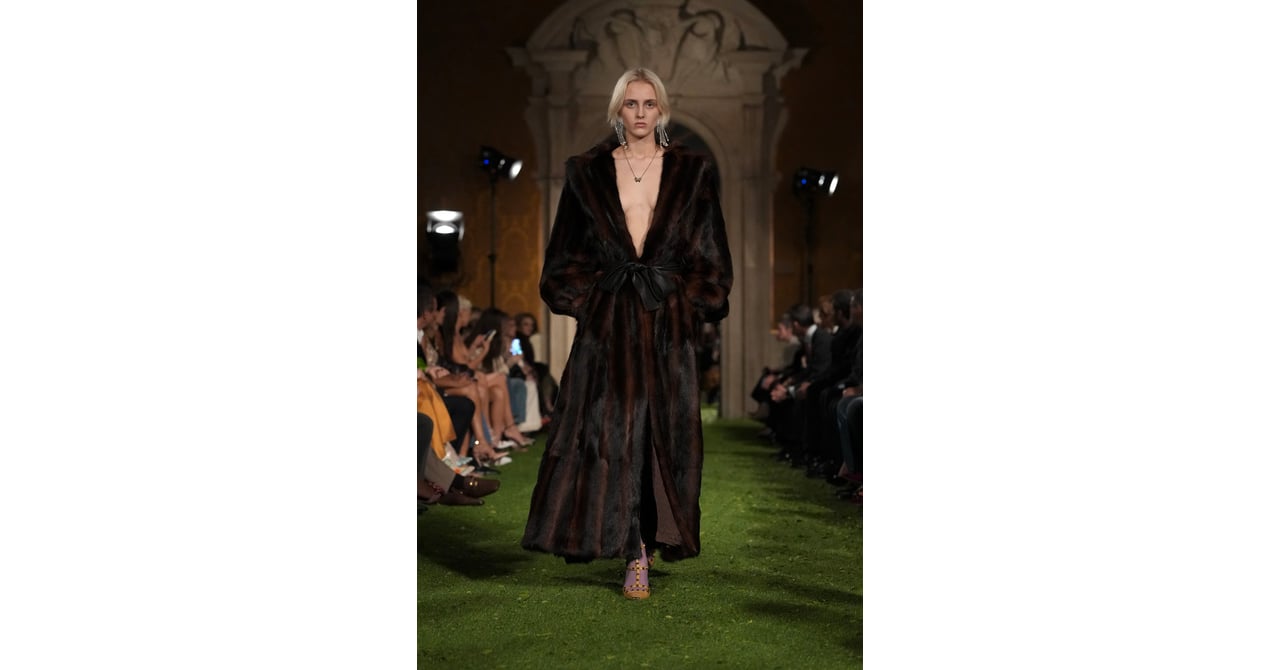 ウールやレザーなどの重厚な素材がコントラストを生む一方、シフォンやオーガンジーなどの軽やかな素材が動きを演出している。デザインの中には、バロック建築を彷彿させる要素も取り入れられている。