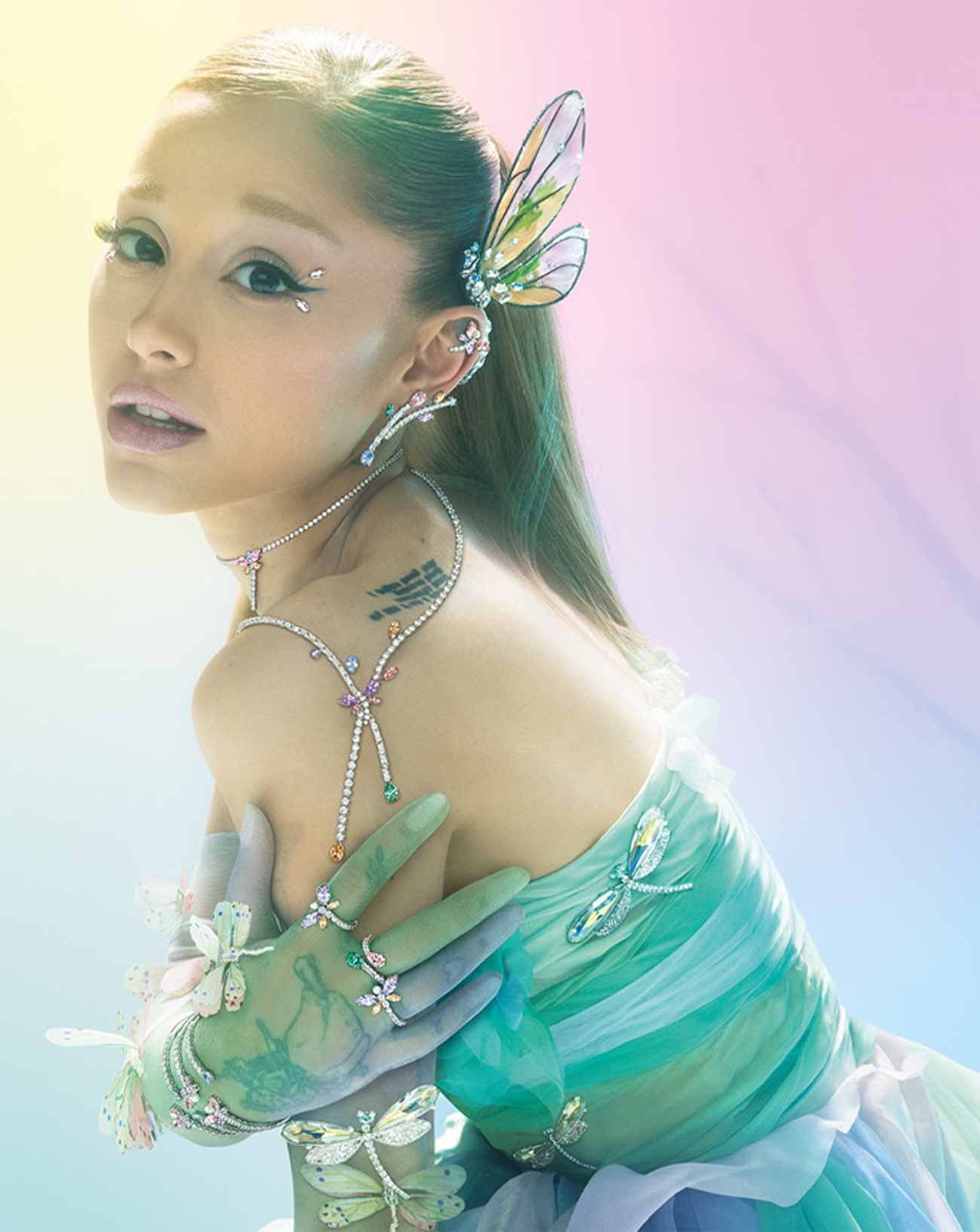 アリアナ・グランデが再び登場し、今回は完全にファンタジーに没頭しました。6月に始まる「エターナル・サンシャイン」ツアーに先駆けて、スワロフスキーがグローバルクリエイティブディレクターであるジョバンナ・エンゲルベルトと共同制作したセカンドコレクション「アリアナ・グランデ×スワロフスキー」を発表しました。 「アリアナの庭」という想像上の世界の中で展開されるこのコレクションは、そのモチーフをハイシャインのジュエリーに翻訳します。 トンボ、花、蝶が虹色のクリスタル、繊細なパール、ミックスメタルを通して複数の形で現れます… これを見て2024年のメットガラでパフォーマンスしたルックの影響を感じた人は他にいますか?