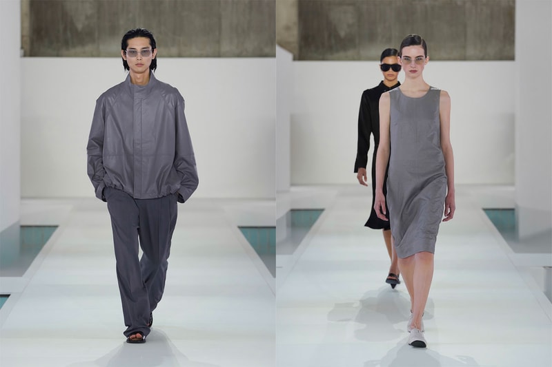今季のキーアイテムについて、カリンは「あえて挙げるとすれば、ショー終盤のルックが特に気に入っています。もしひとつ選ぶとしたら、メンズではグレーのレザージャケットにテーラードパンツ、そしてアイウェアを合わせたスタイルが、このコレクションを象徴するルックだと感じています。ウィメンズでは、クリンクルレザーを用いたミニマルなドレスが印象的です」と説明しました。
