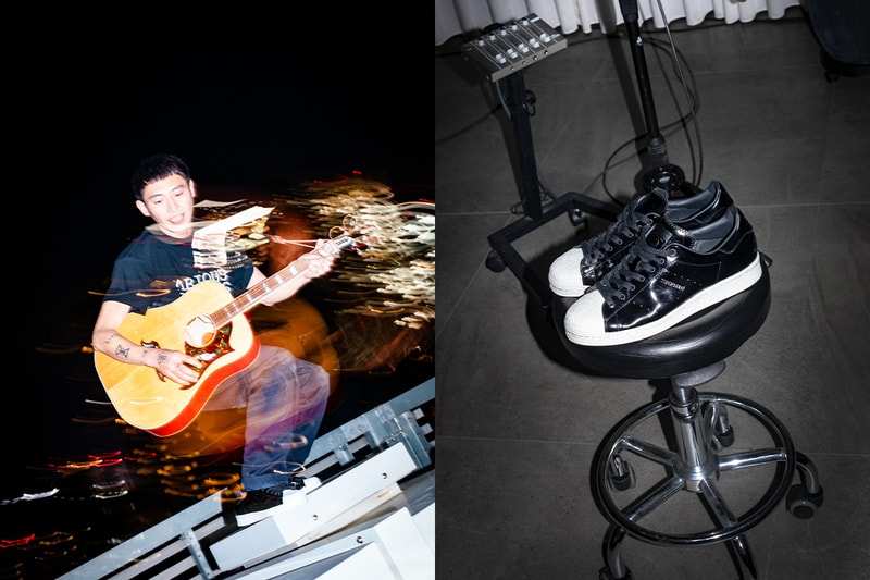 デザインは、ソールや象徴的なシェルトゥにSUPERSTARのディテールを採用しつつ、アッパー構造やパーフォレーションによるスリーストライプスなどにはSTAN SMITHのアイデンティティを反映。カラーリングは80年代のSUPERSTARを想起させるオフホワイトのソールにブラックアッパーを組み合わせ、素材には光沢感のあるパテントを採用することで、クラシックとモダンが共存する仕上がりとなっている。