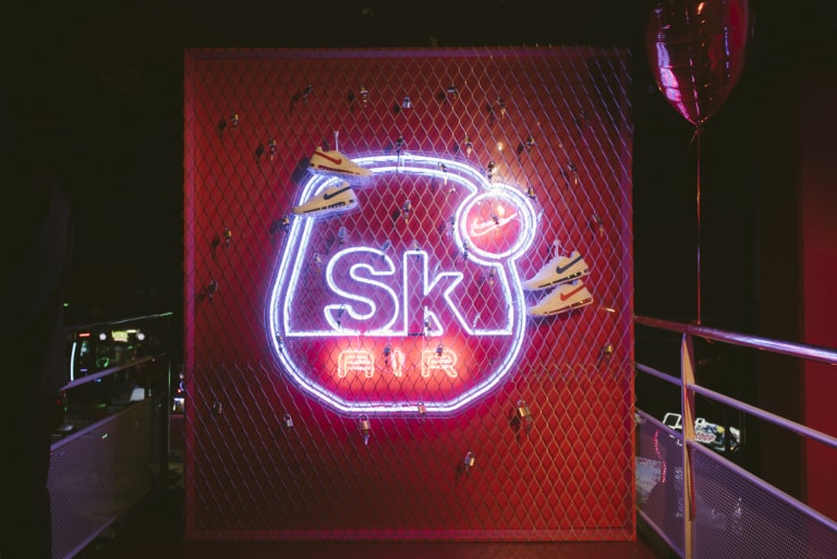 ゲームセンターを彷彿とさせる同会場では、バスケットやボウリング、インベーダーゲーム、UFOキャッチャーなど、レトロゲームに混じってAM97/BWが展示され、記念すべき夜を盛り上げるためにMyth Syzer(マイス シーザー)やHamza(ハムザ)、そしてフランス発のヒップホップクルー13Block(13 ブロック)によるライブパフォーマンスも行われたようだ。まずはネオンに照らされる同会場内の様子と大勢の関係者が群がる輪の中で無邪気に楽しむSkeptaの姿をチェックしよう。