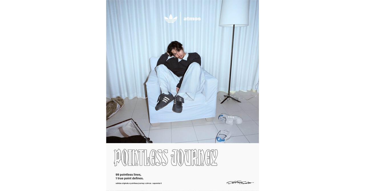 King Gnuの常田大希が手掛けるブランド「ポイントレス ジャーニー(POINTLESS JOURNEY)」が、「アトモス(atmos)」「アディダス オリジナルス(adidas Originals)」とのトリプルコラボレーションシューズ「SUPERSTAR II atmos DAIKI TSUNETA POINTLESS JOURNEY」を発表した。4月14日からアトモス公式オンラインストアとアディダス Confirmed アプリで抽選販売し、25日からアトモスの一部店舗とアディダスの一部直営店で取り扱う。