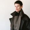 EÑAUT concluded the week with “Ego Dissolution,” a collection controlled in its palette and structure. Closed by model Dalton Dubois, the show reflected on undergoing personal growth and emerging as a ‘stronger version of oneself’. Featuring a predominantly monochromatic line, some looks had accents of forest green, black, and grey. The collection also took inspiration from ice hockey costumes, evident in the padded sections used to symbolise a protective volume around the body.