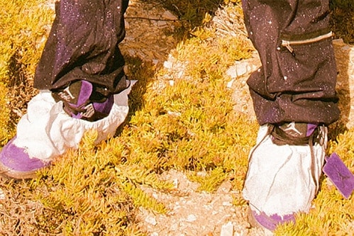 彼の専属フォトグラファーとして知られる@RAYSCORRUPTEDMINDが『032c』最新号のために撮影を手がけた同ビジュアルに写るのは、丘を背景にジャンプスーツに身を包んだ“La Flame”の異名を取るTravis Scott。足元にはパープル色のヌバック素材を使用し、アクセントにブラックカラーのパーツを用いたAir Jordan 4が写し出されており、その殆どの部分がカバーのようなもので覆い隠されているもののネット上では“Cactus Jack”モデル、ブラック/グレーモデルに次ぐ新たなコラボシューズであることが濃厚とされている。